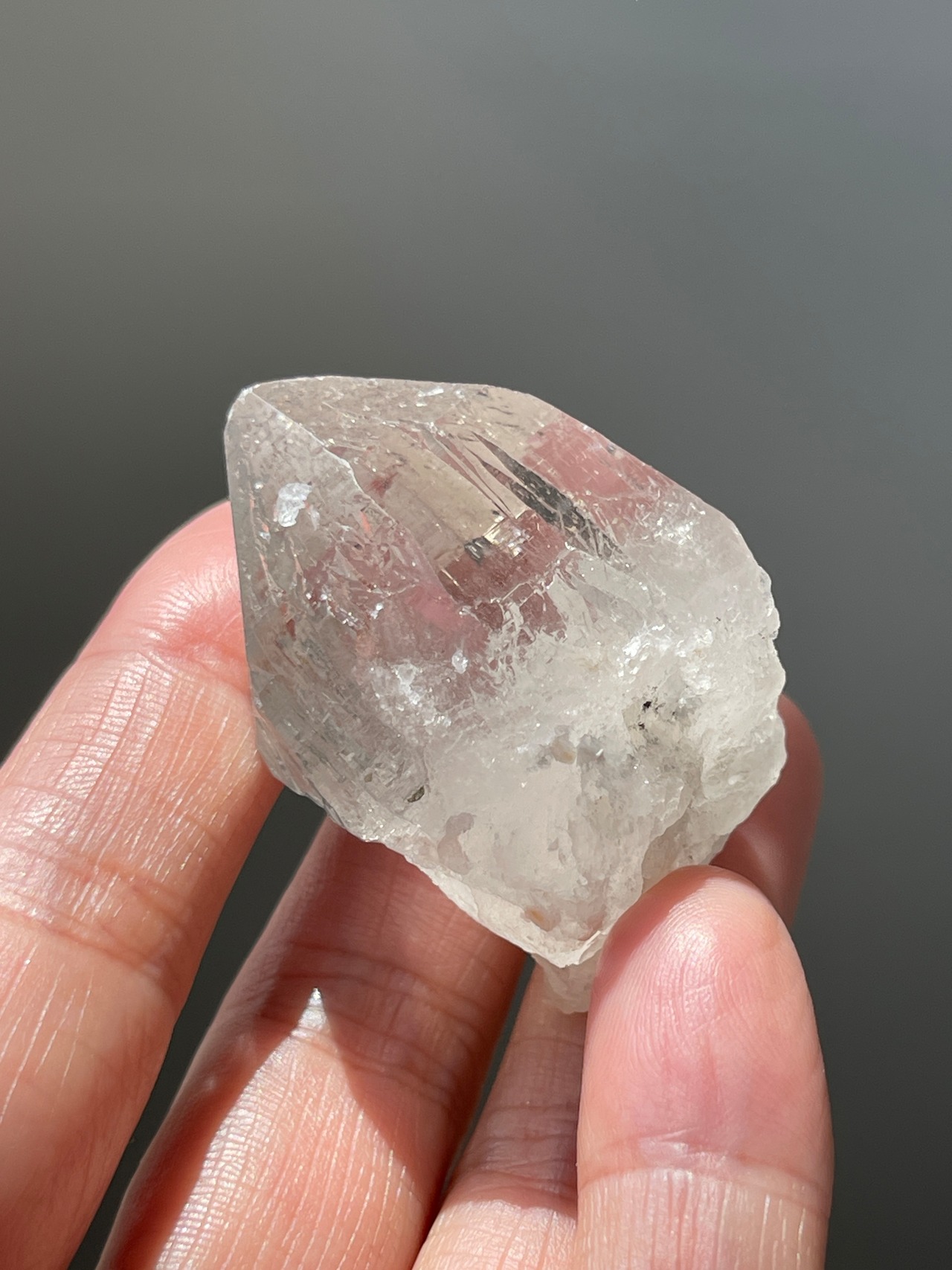 こちらの水晶は内側に光が当たるとシュワシュワとした細かい輝きがみられます。