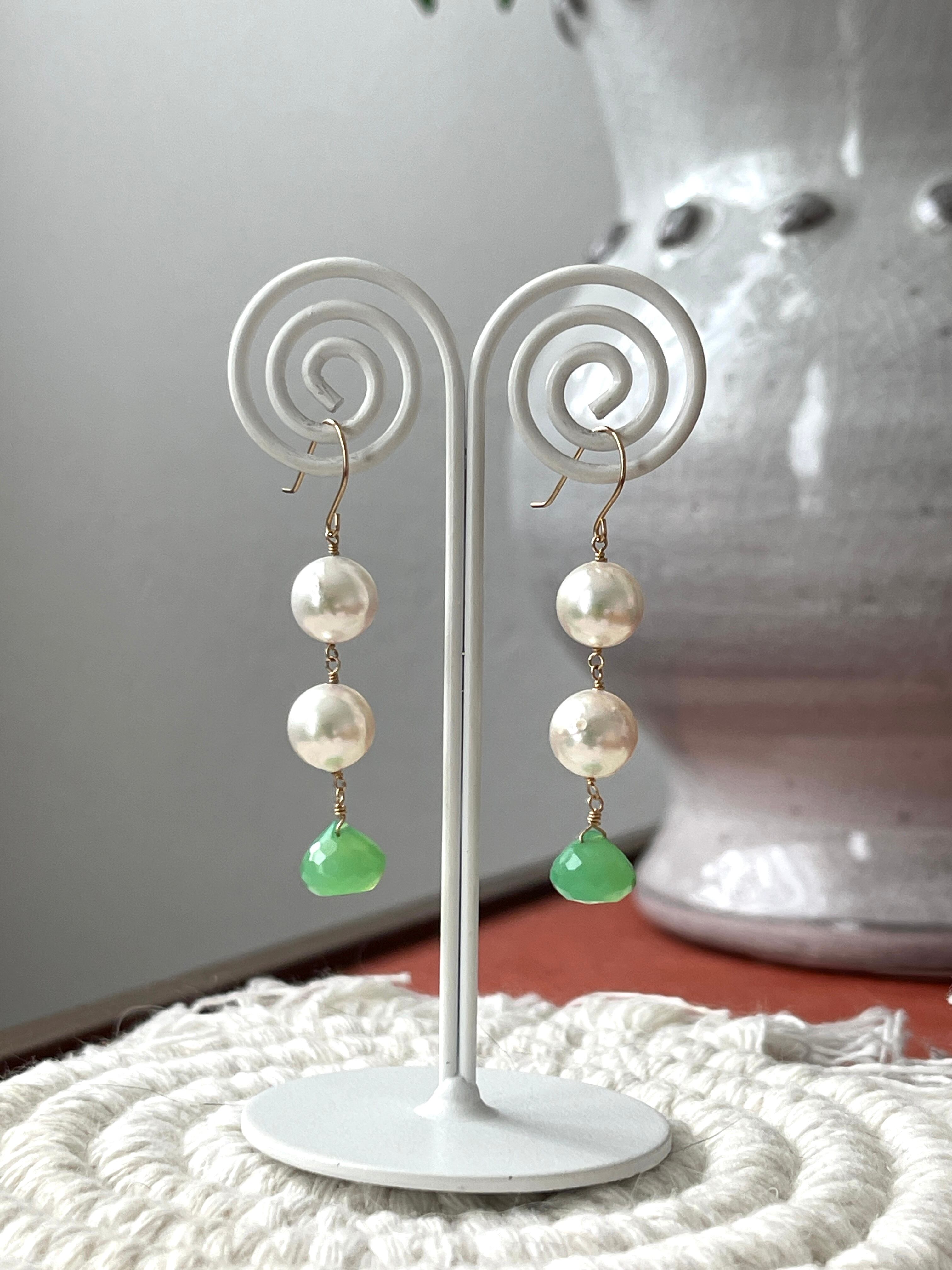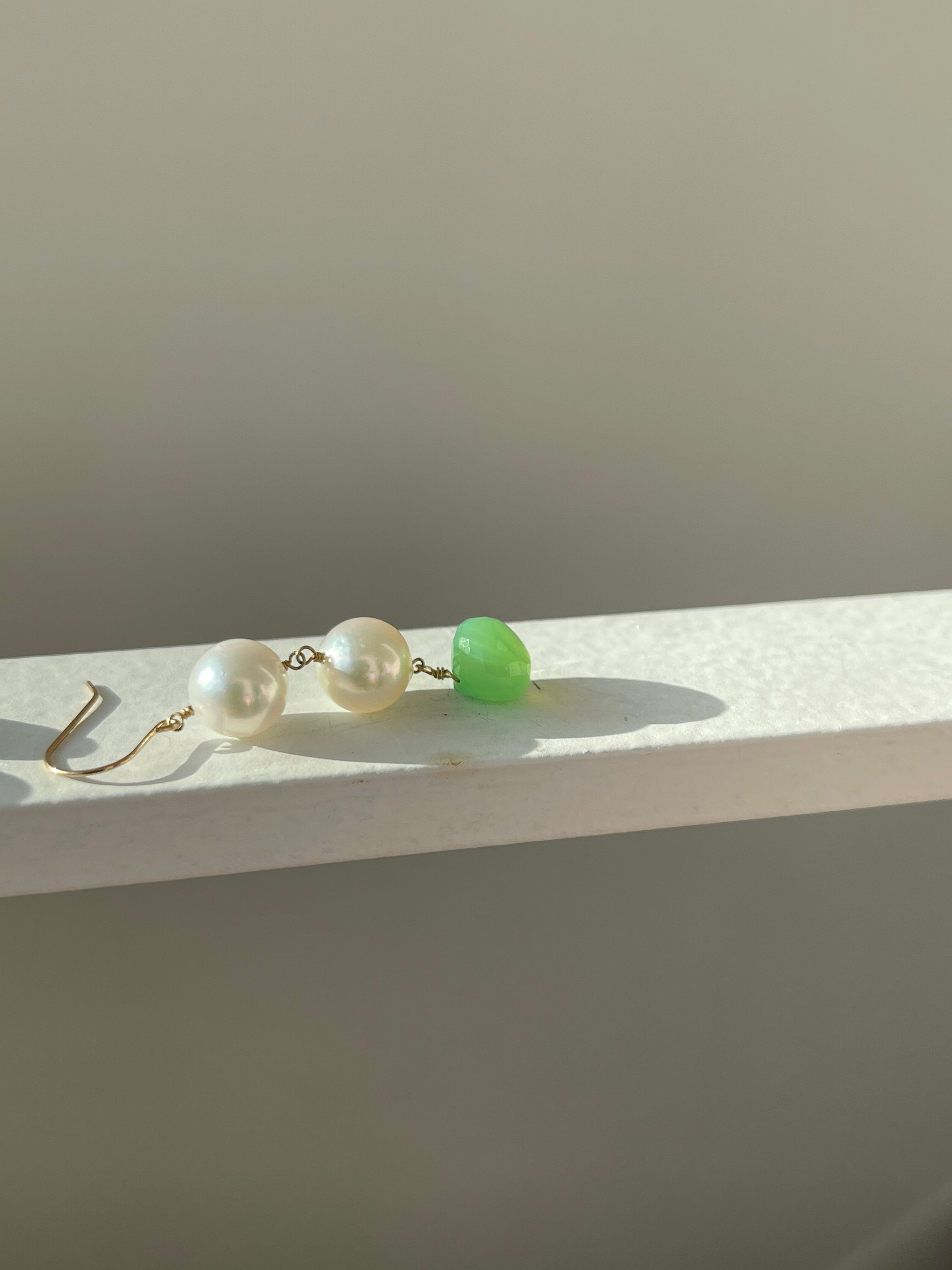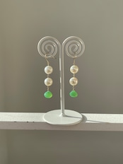 まんまるのアコヤパールとクリソプレーズの10Kピアスが入荷致しました。