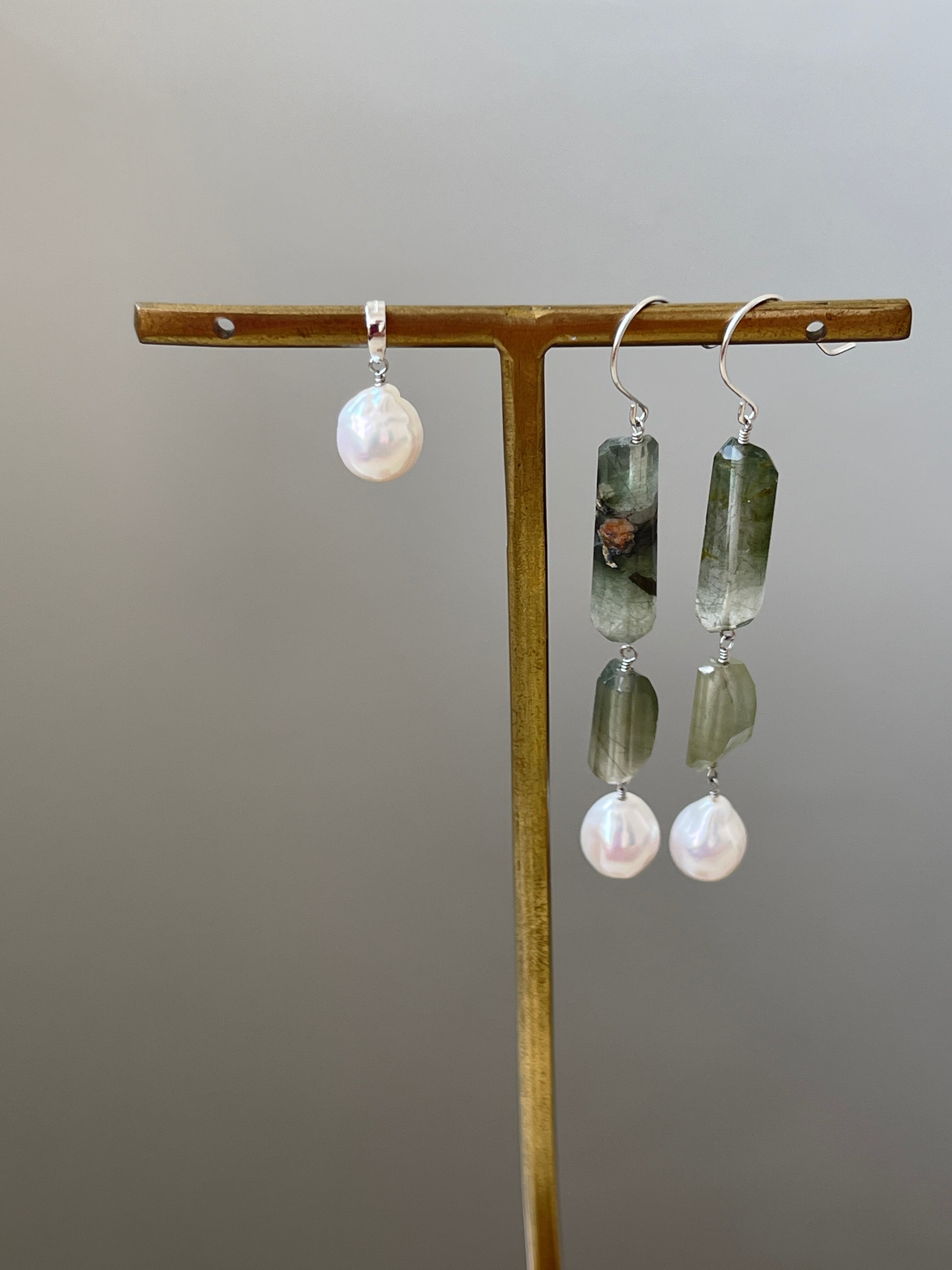石 グリーンルチルクォーツ、淡水パール