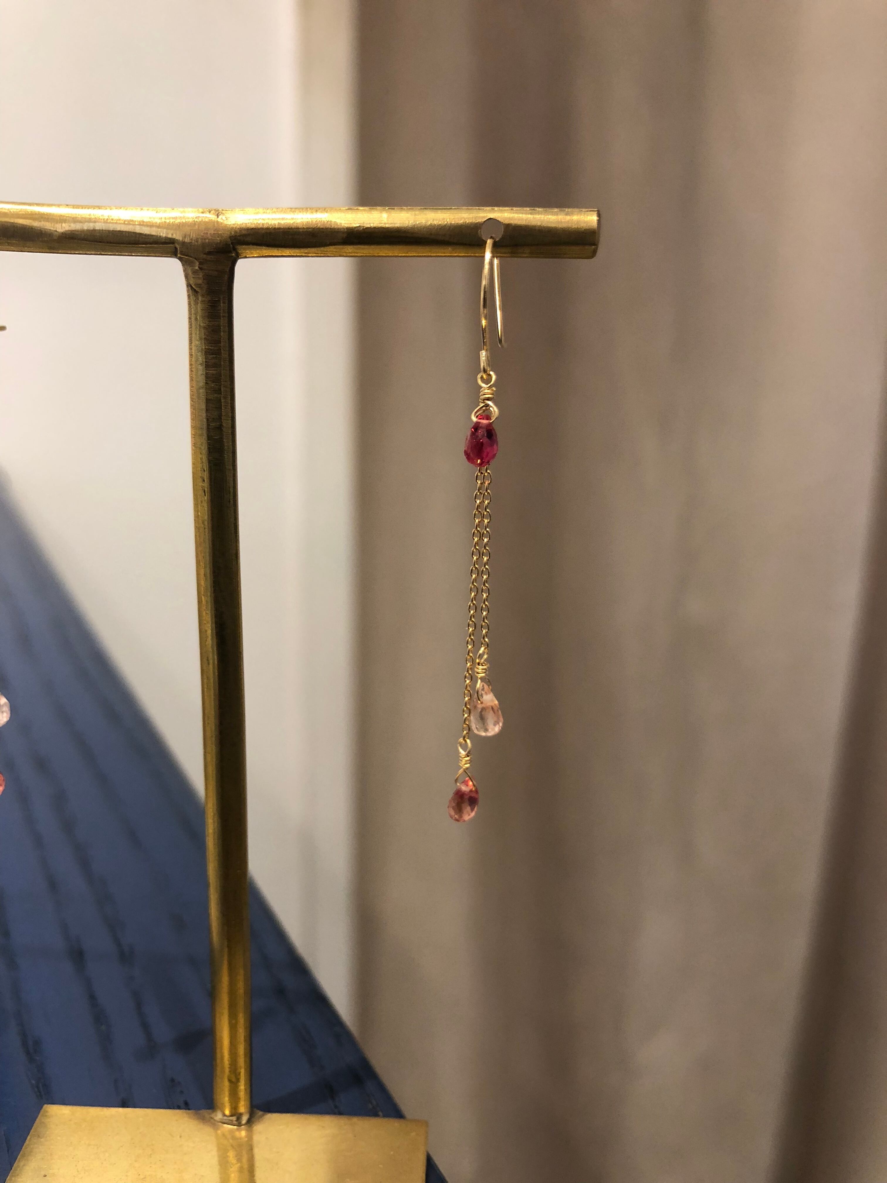 マルチカラーサファイア3色の色の違いが楽しめるピアスです。