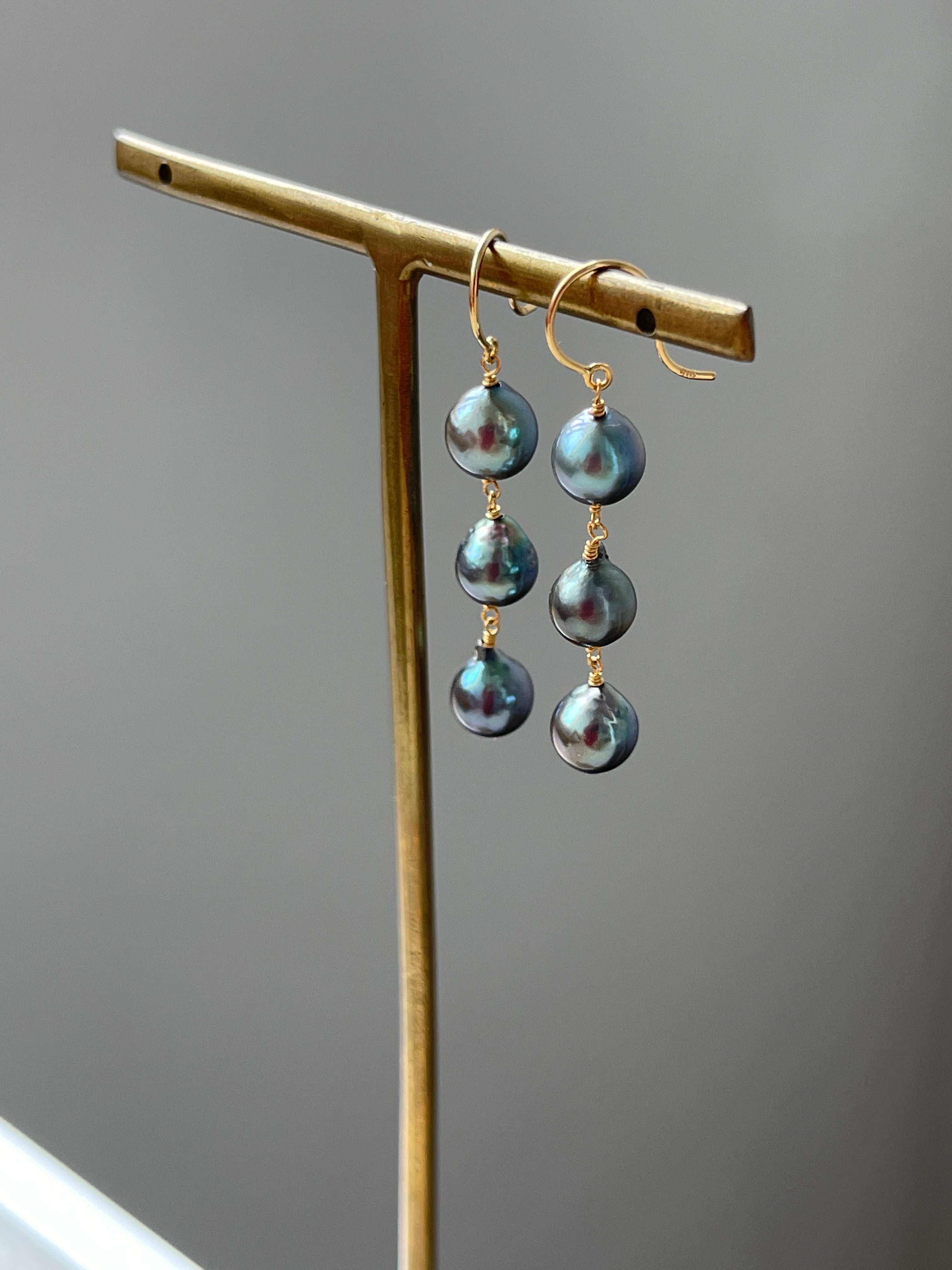 ピーコックカラーのアコヤパール18kピアスです。