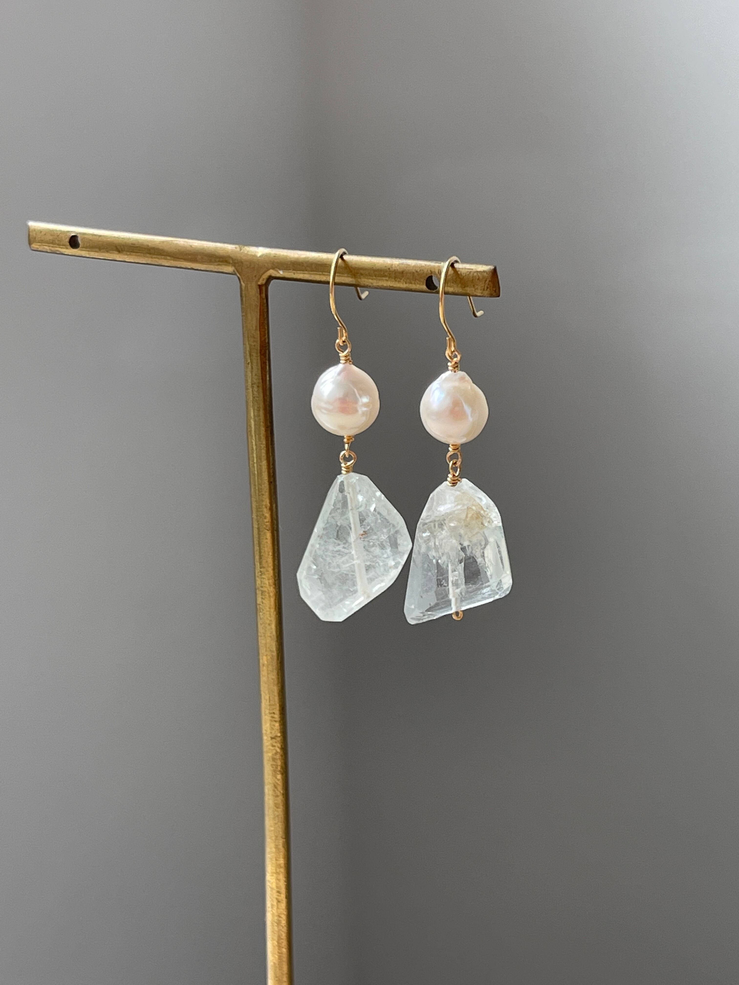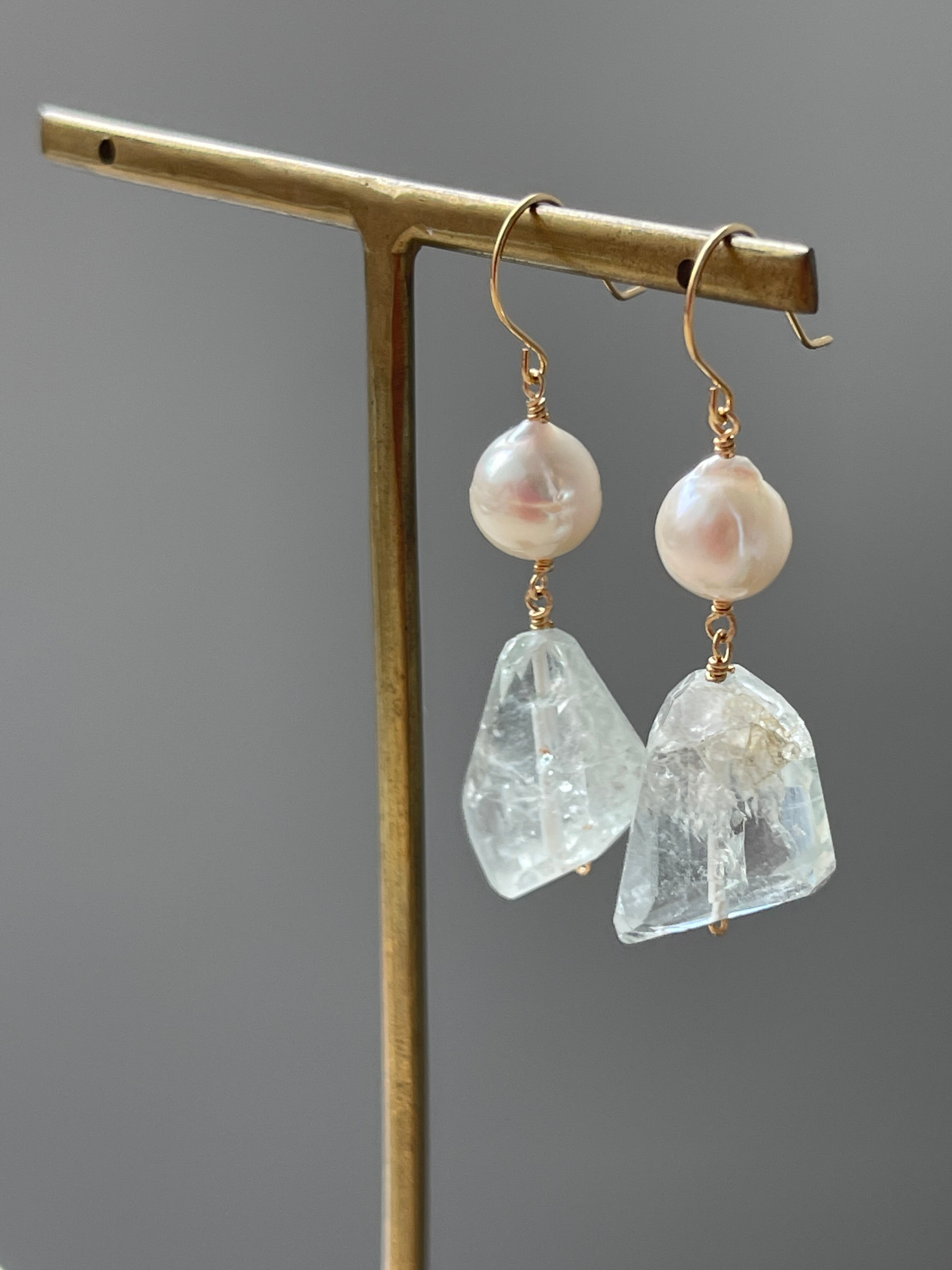 美しい輝きのベリルとアコヤパールのピアスが完成しました。