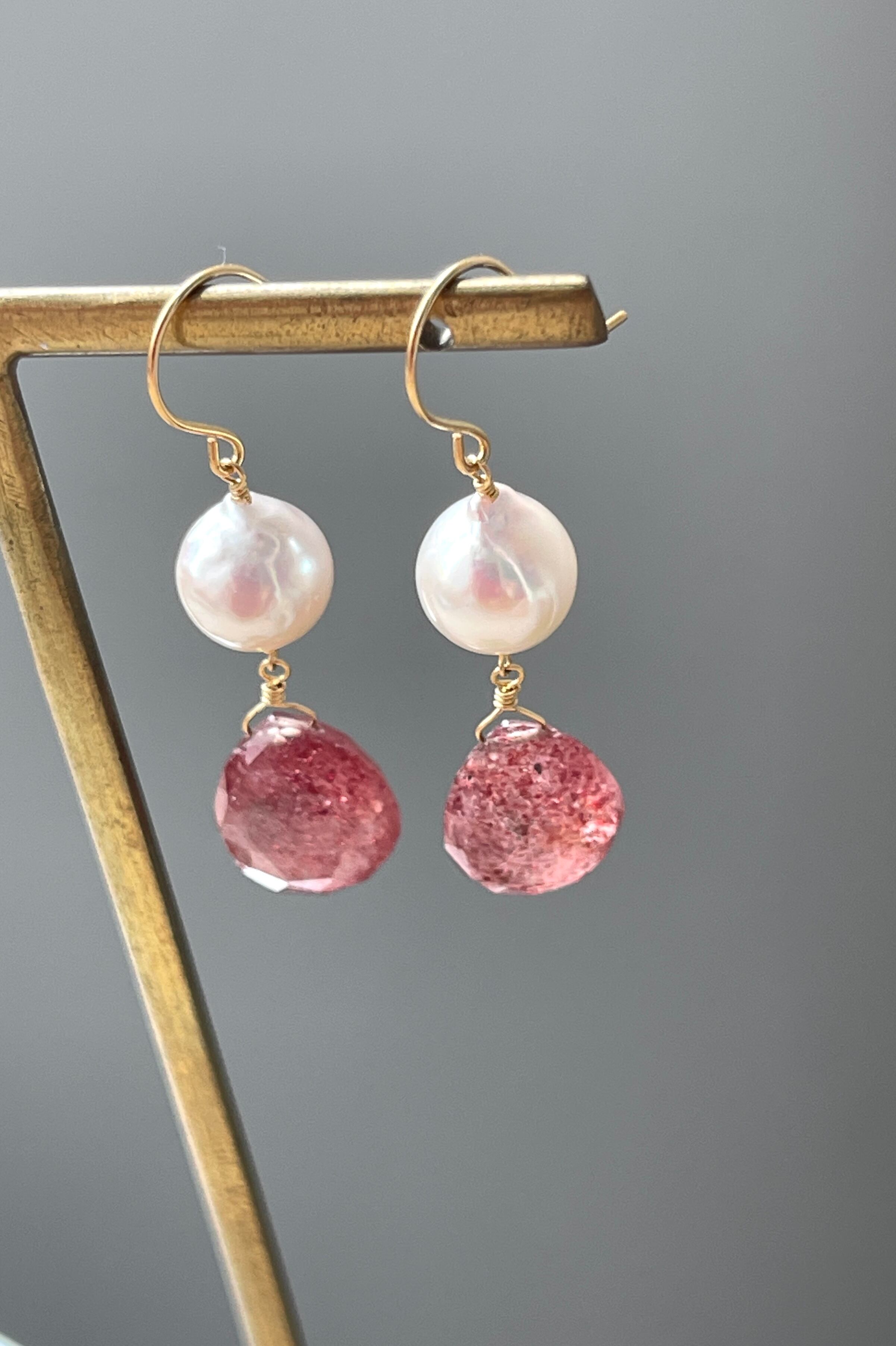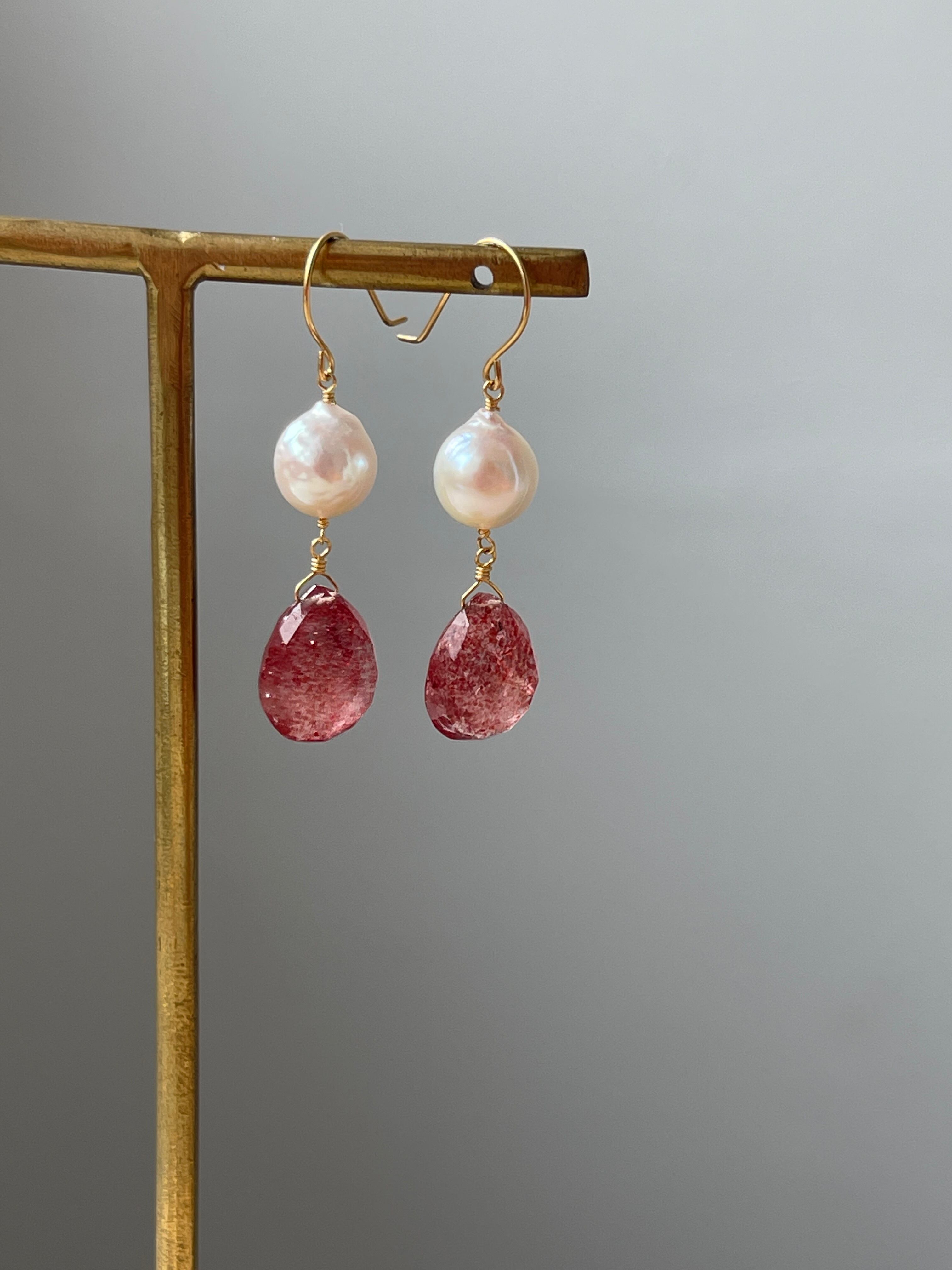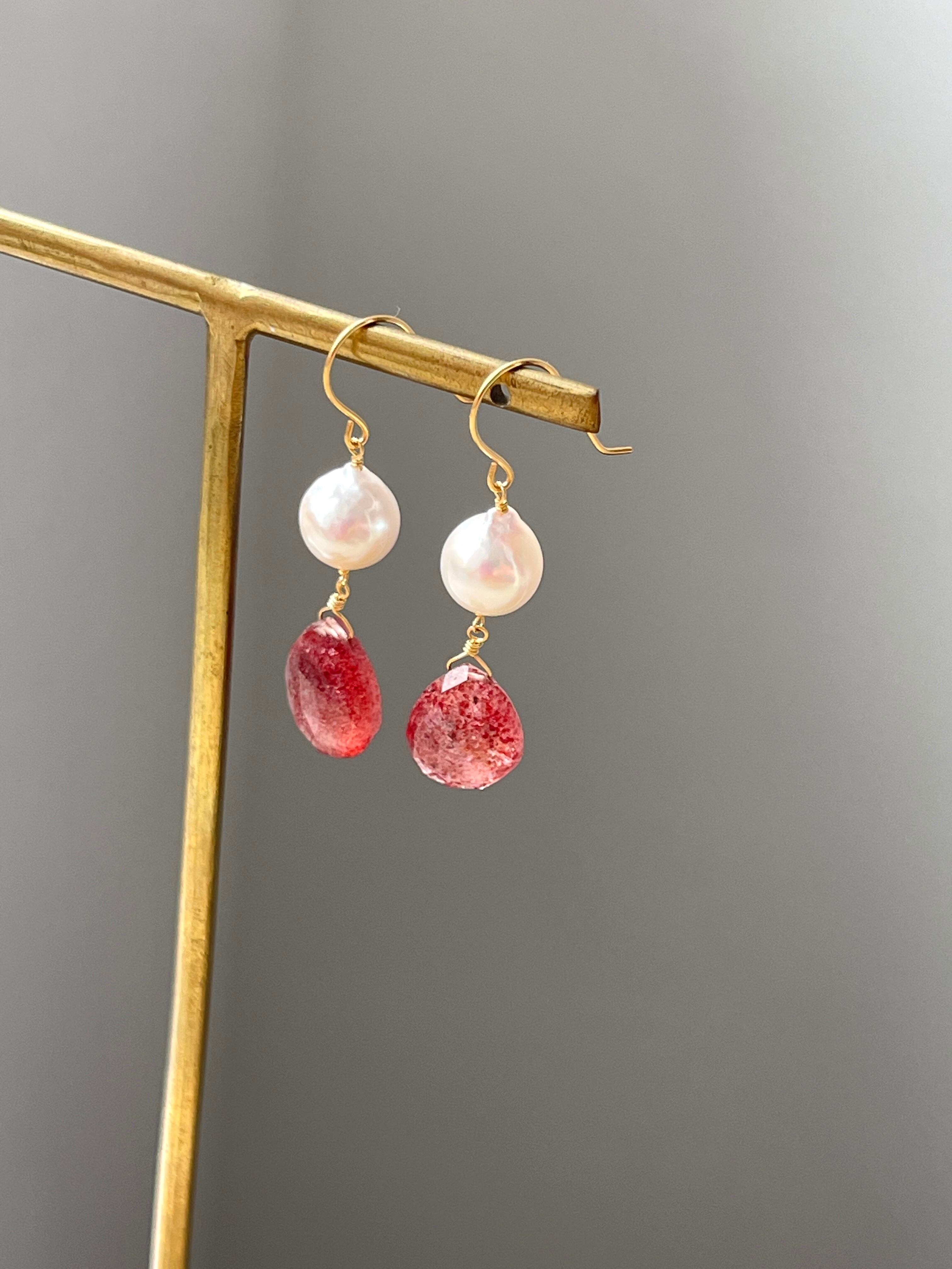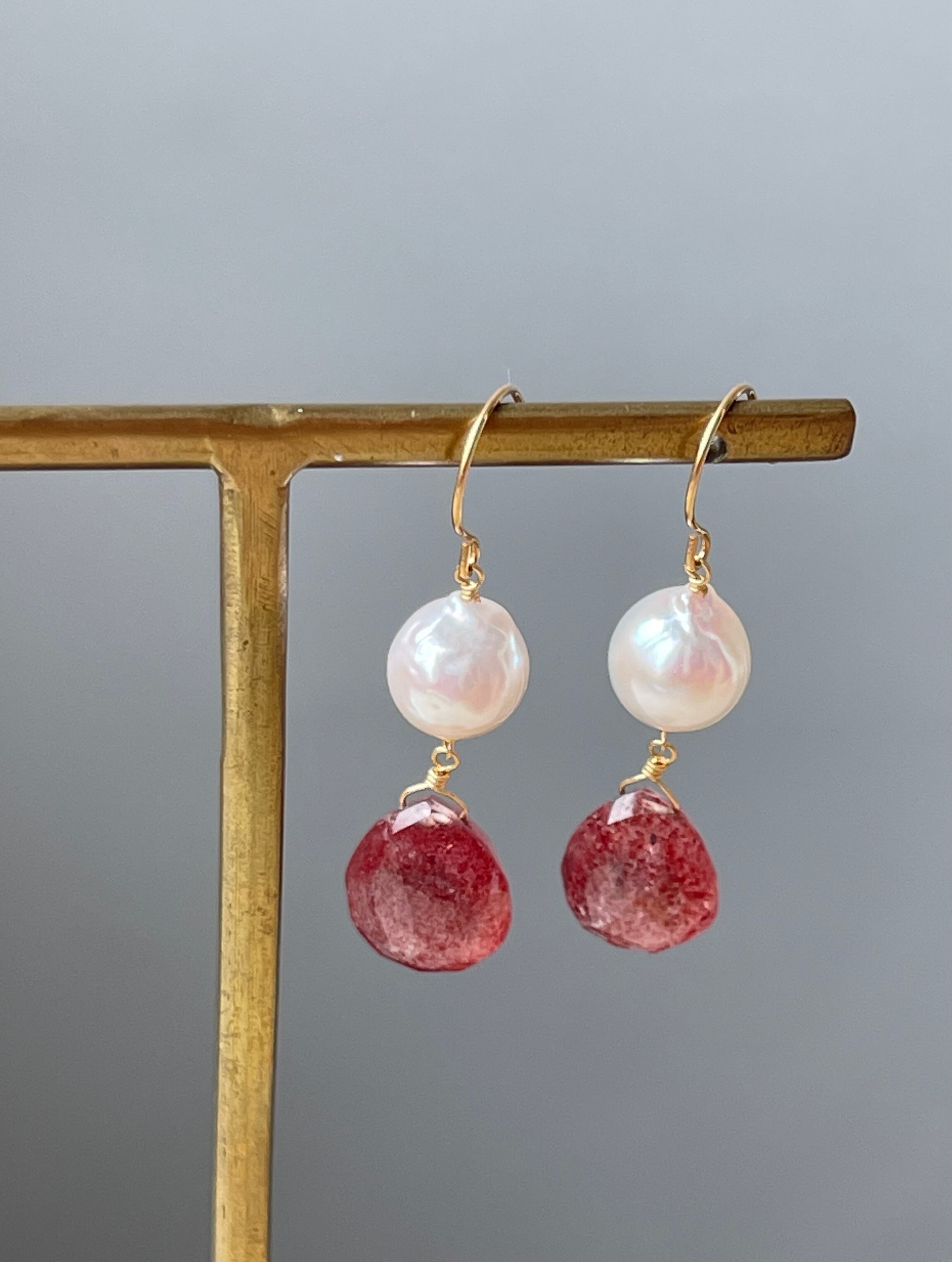 ピンクエピドートとアコヤパールの18Kピアスです。