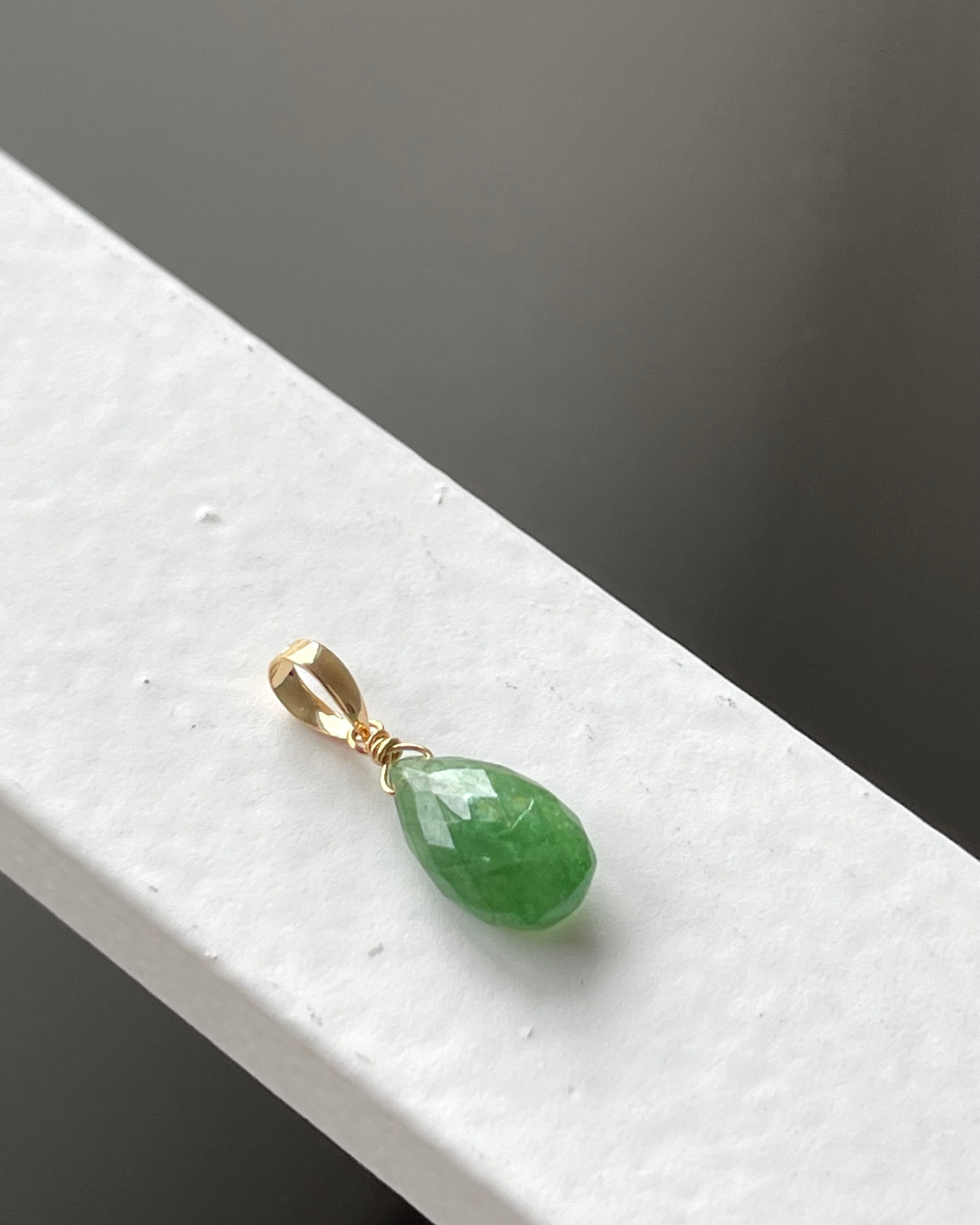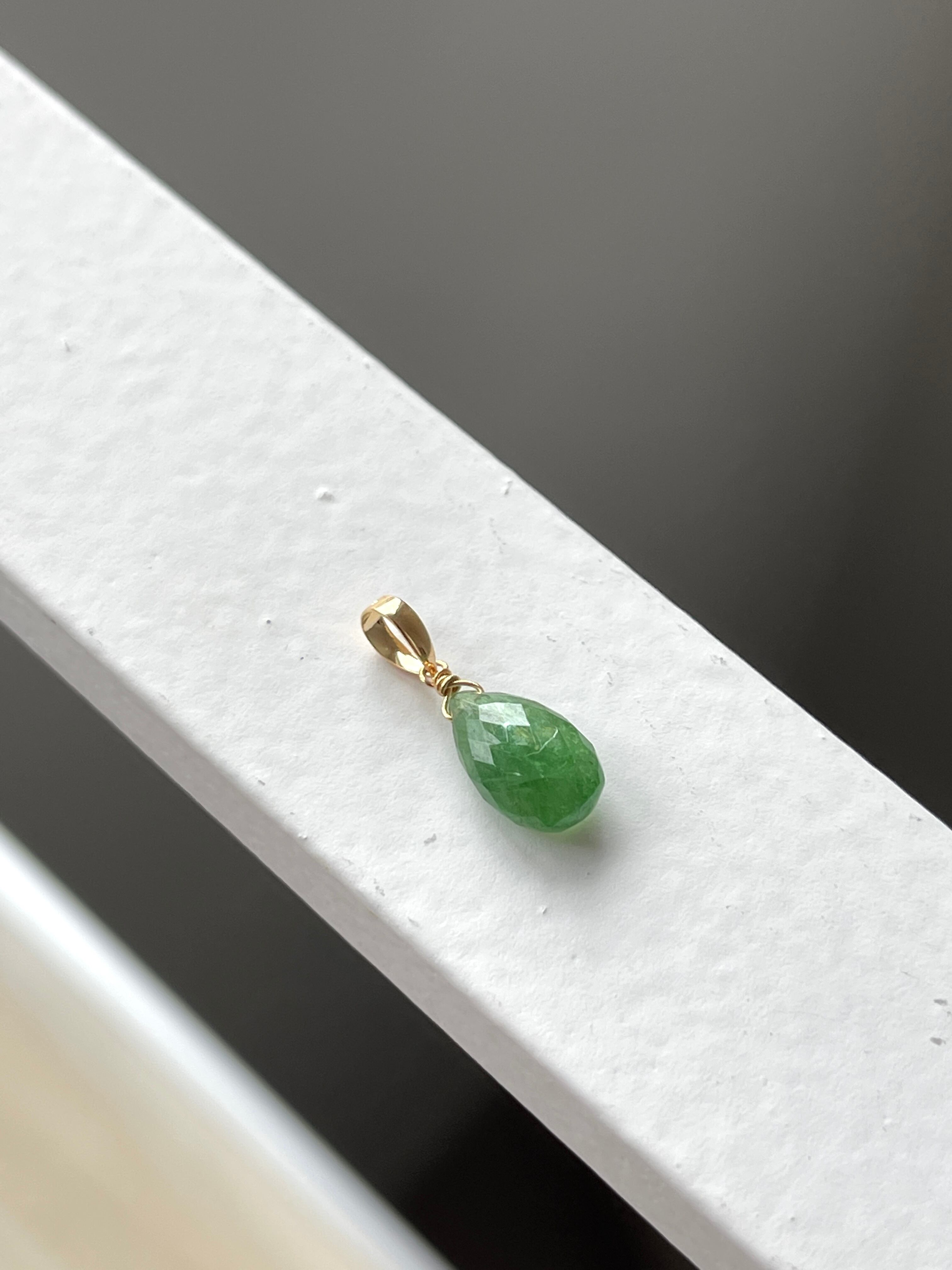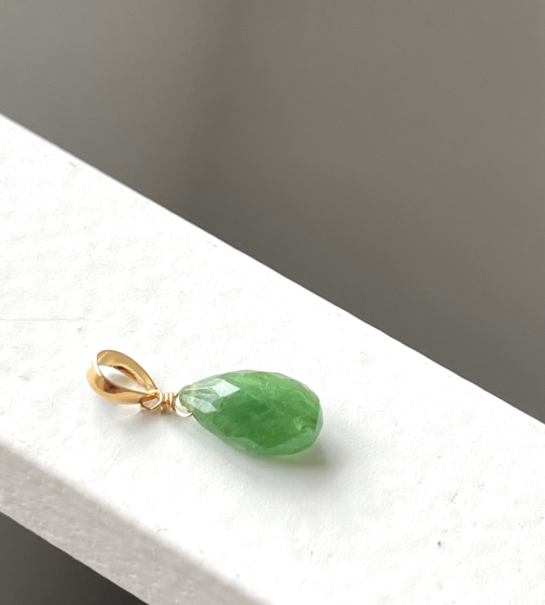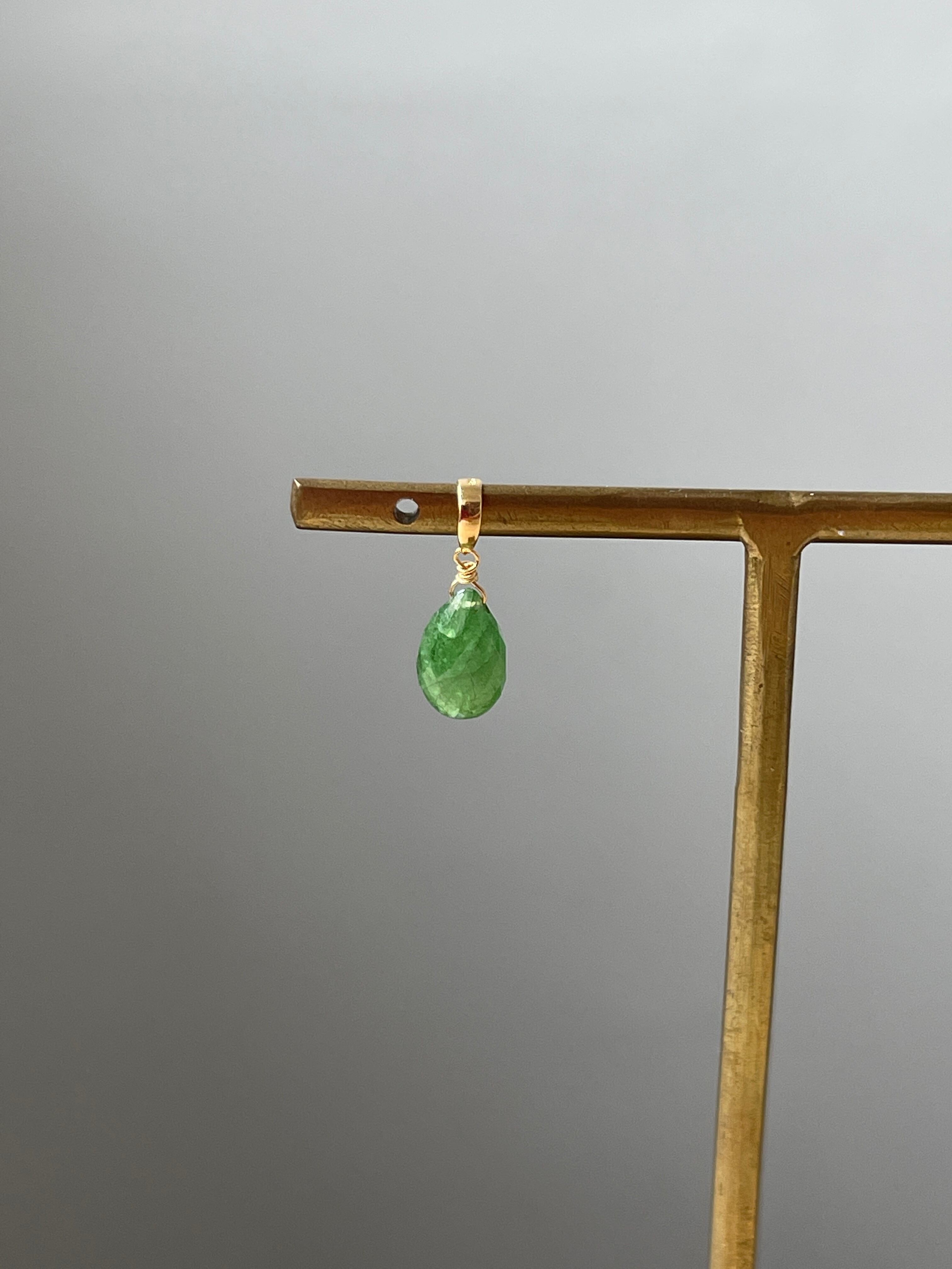 こちらのペンダントトップに使用しているガーネットはグリーン系になります。