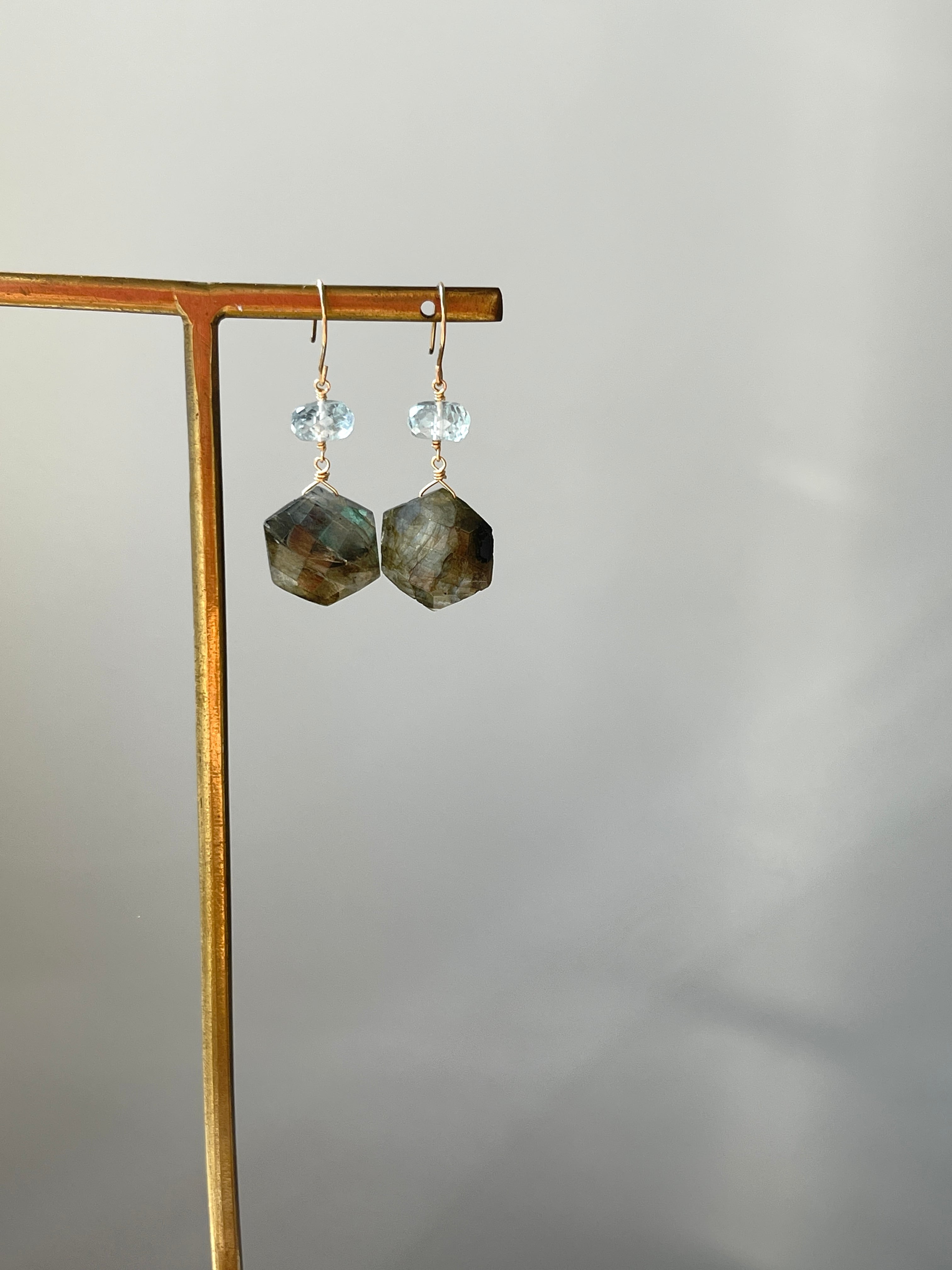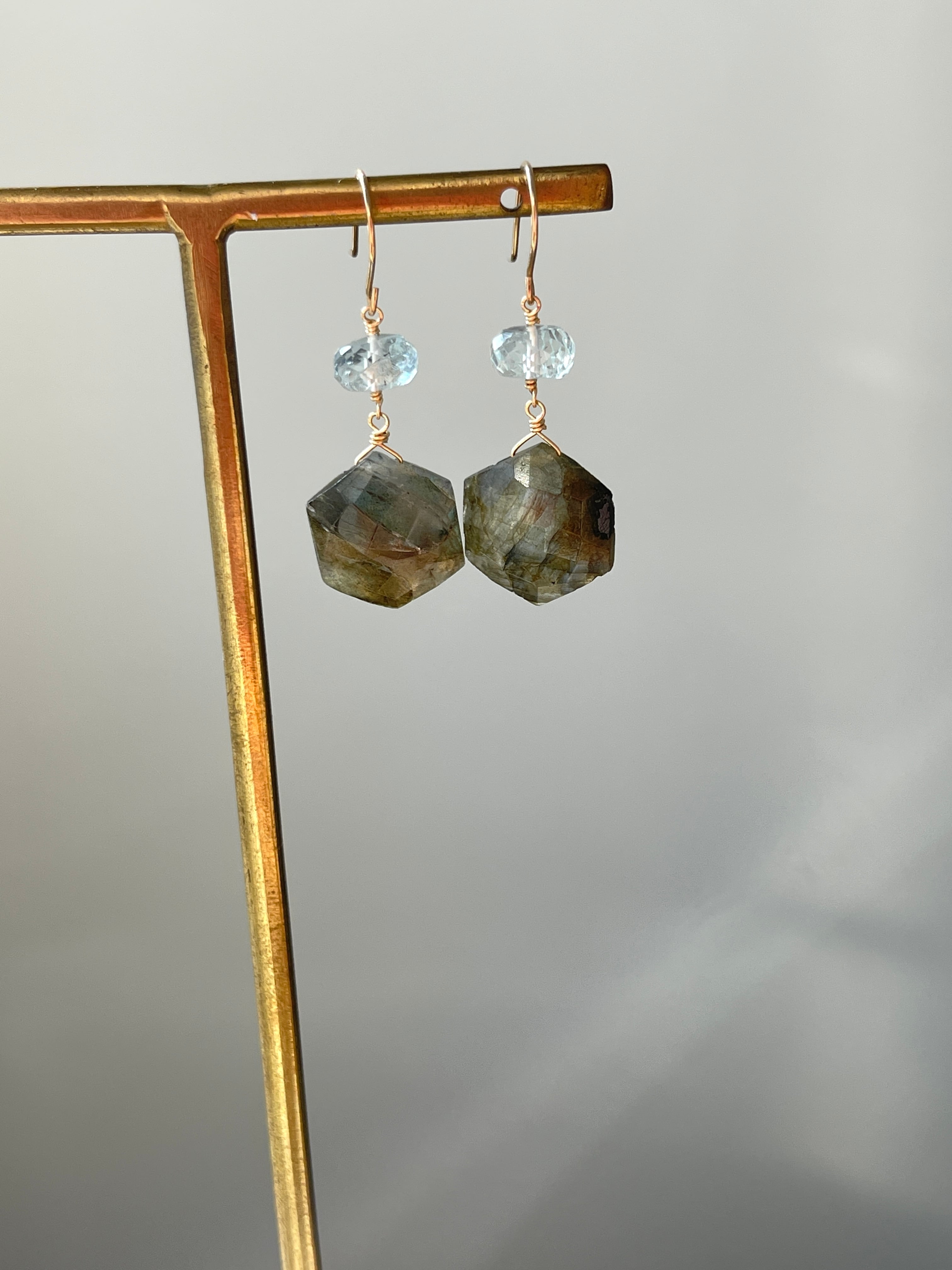 神秘的なラブラドライトの輝きが見る人の心を奪ってしまう、、、とても魅力的なピアスが入荷しました。