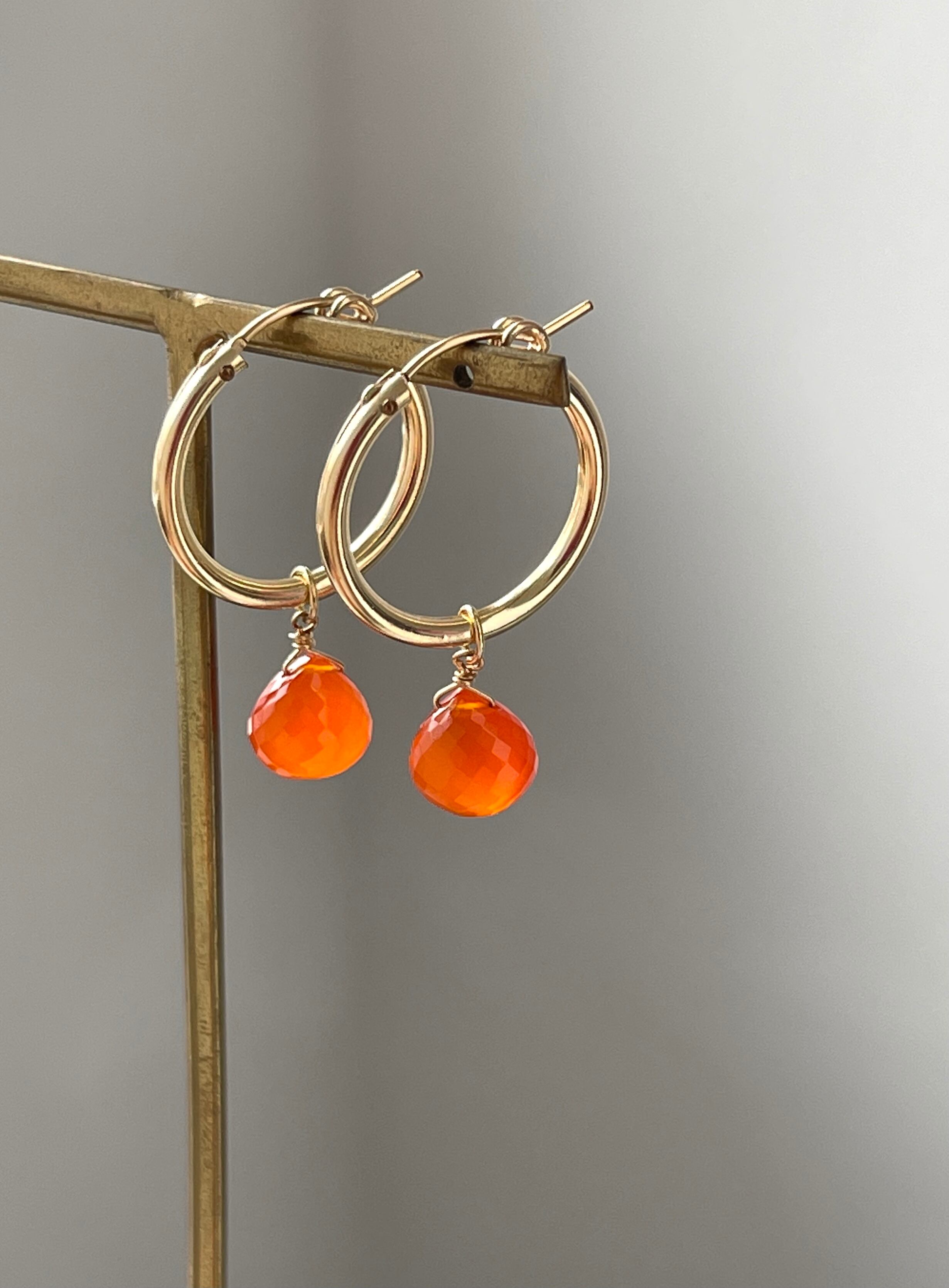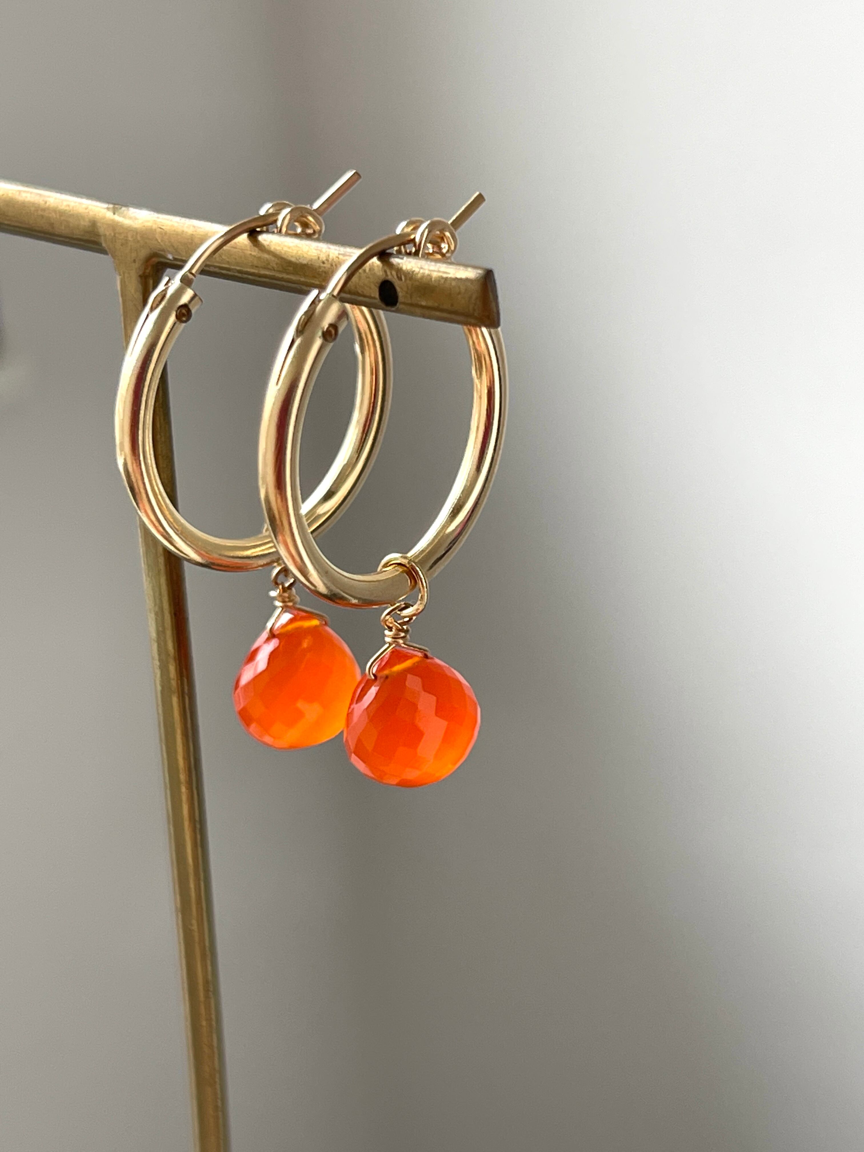 明るく元気いっぱいなエネルギーを持ったカーネリアンのフープピアスです。