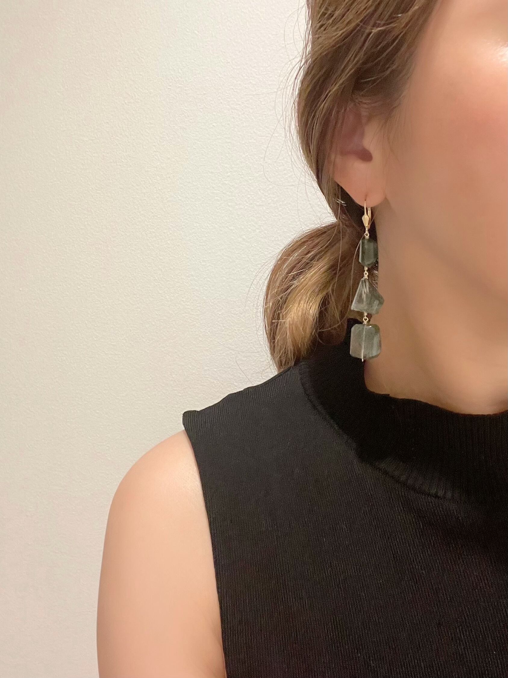 流通量のとても少ないグリーンルチルクォーツの大ぶりピアスです。