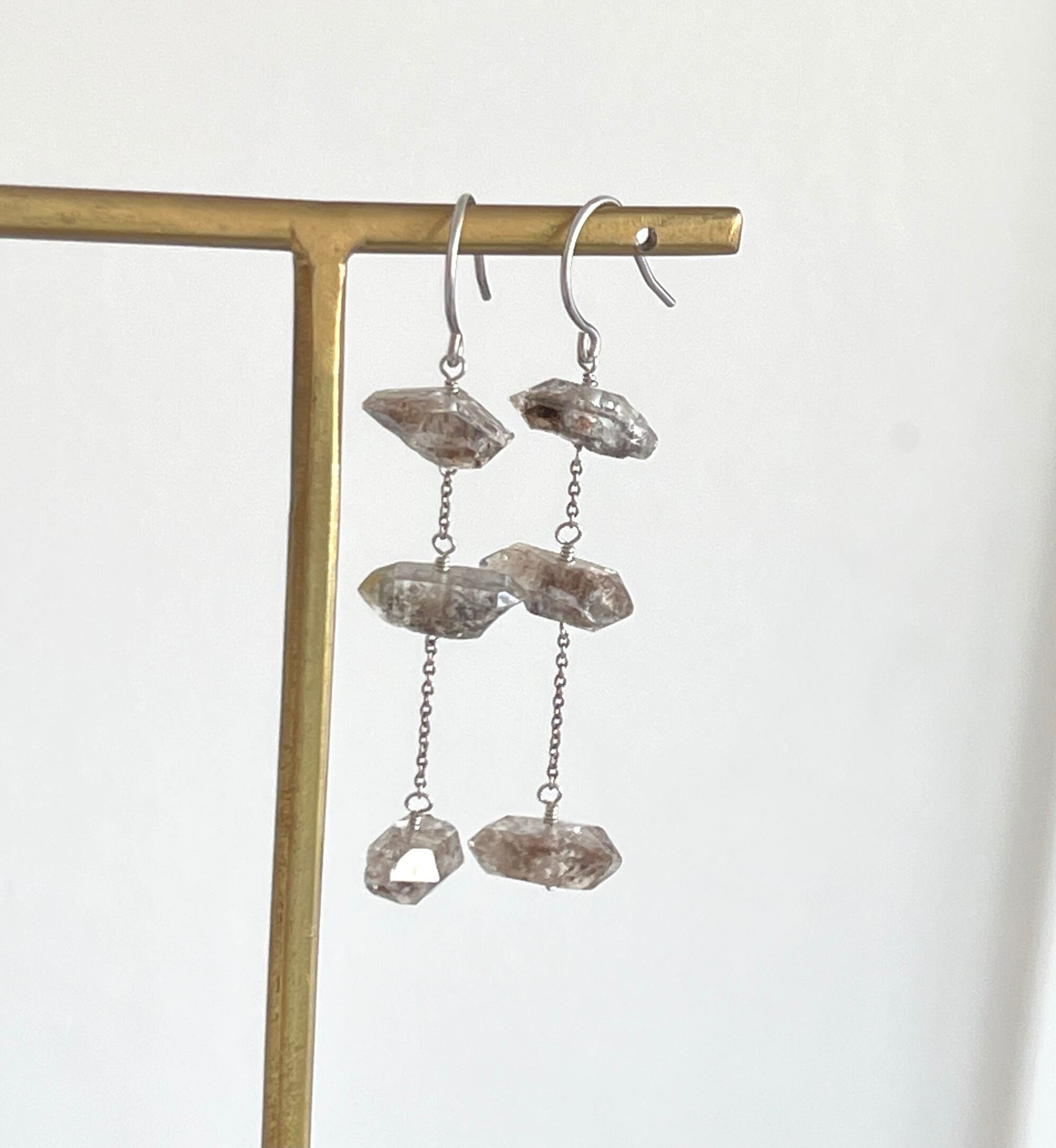 パキスタン産ダブルポイントクリスタルのピアスです。
