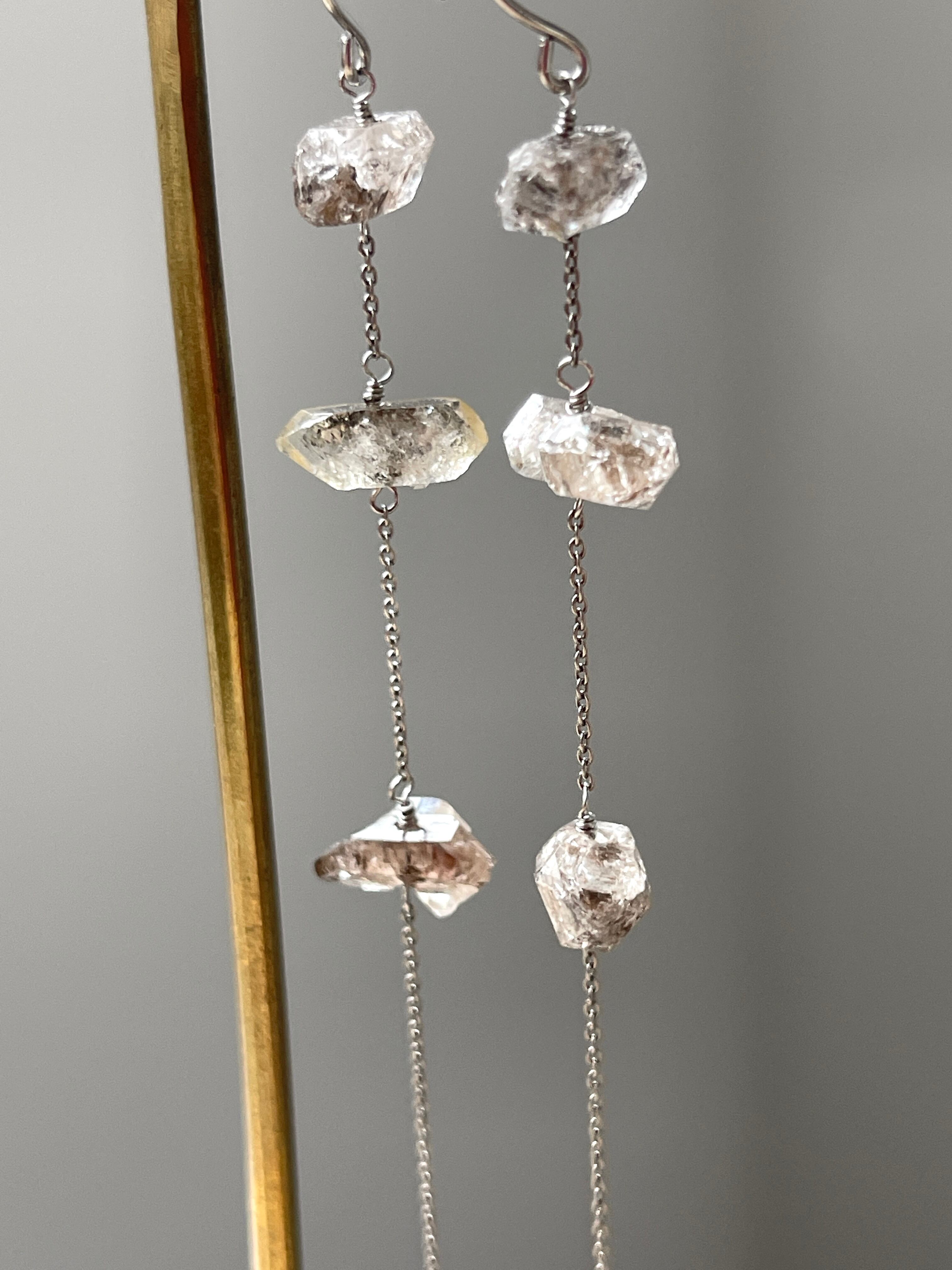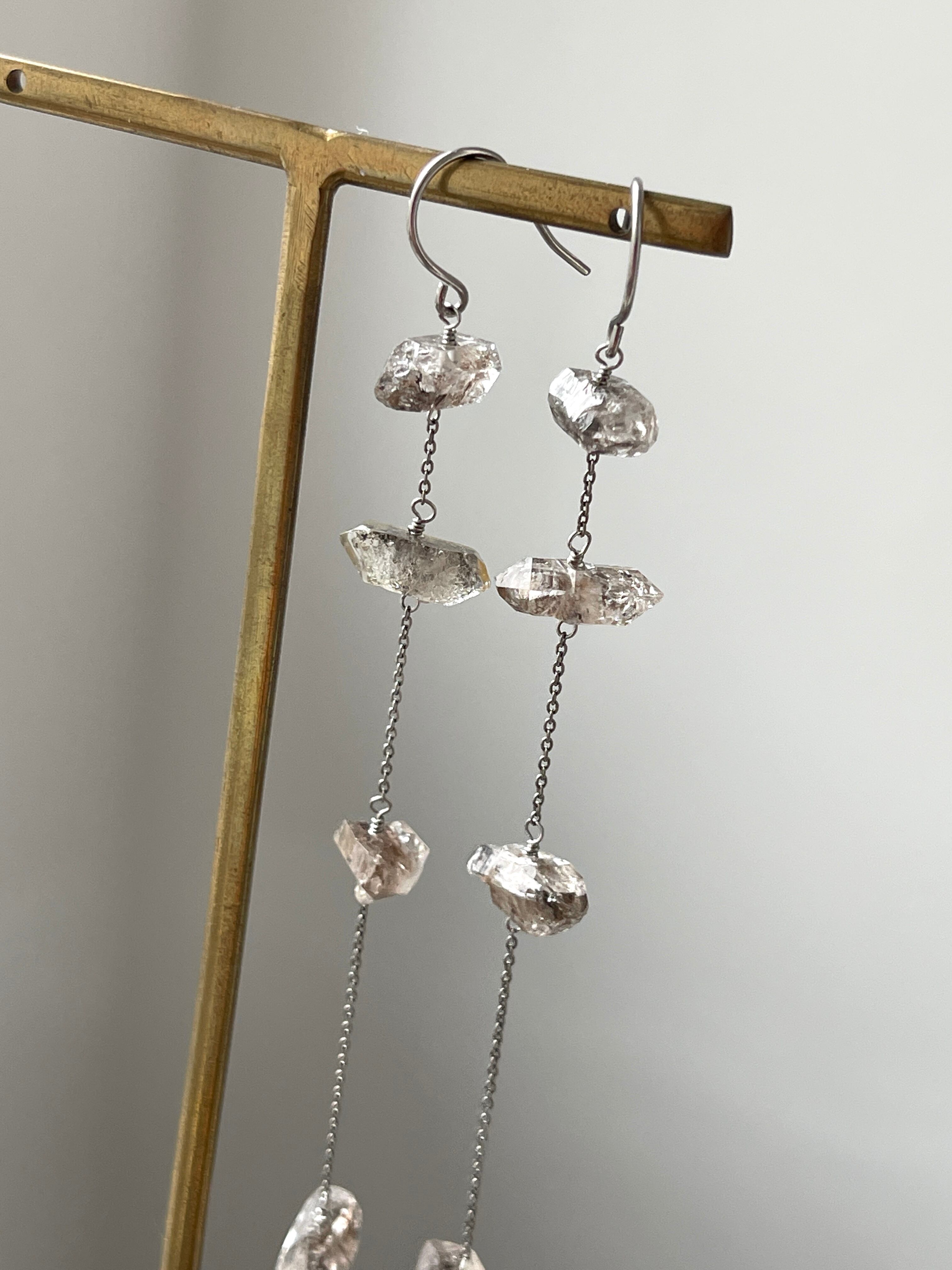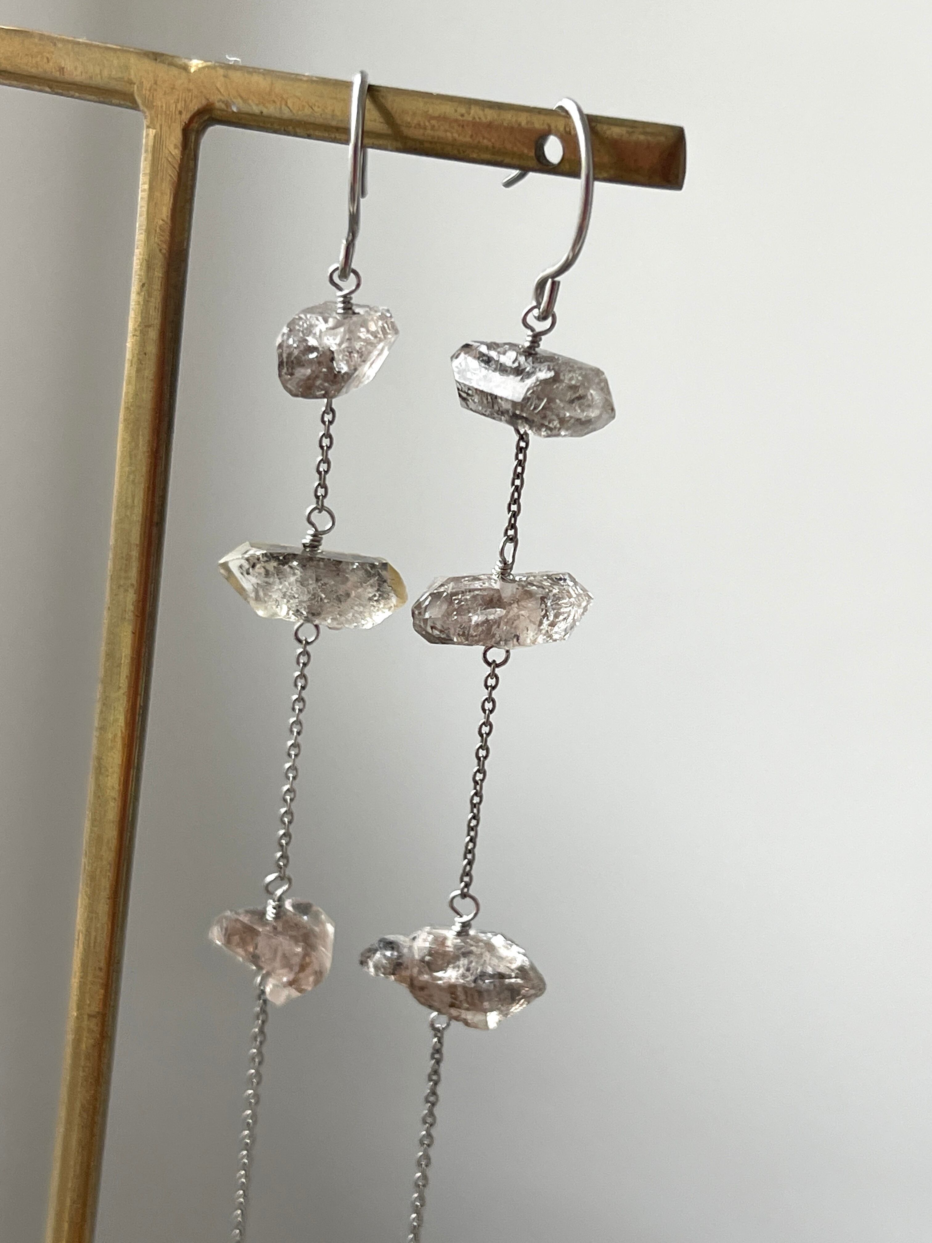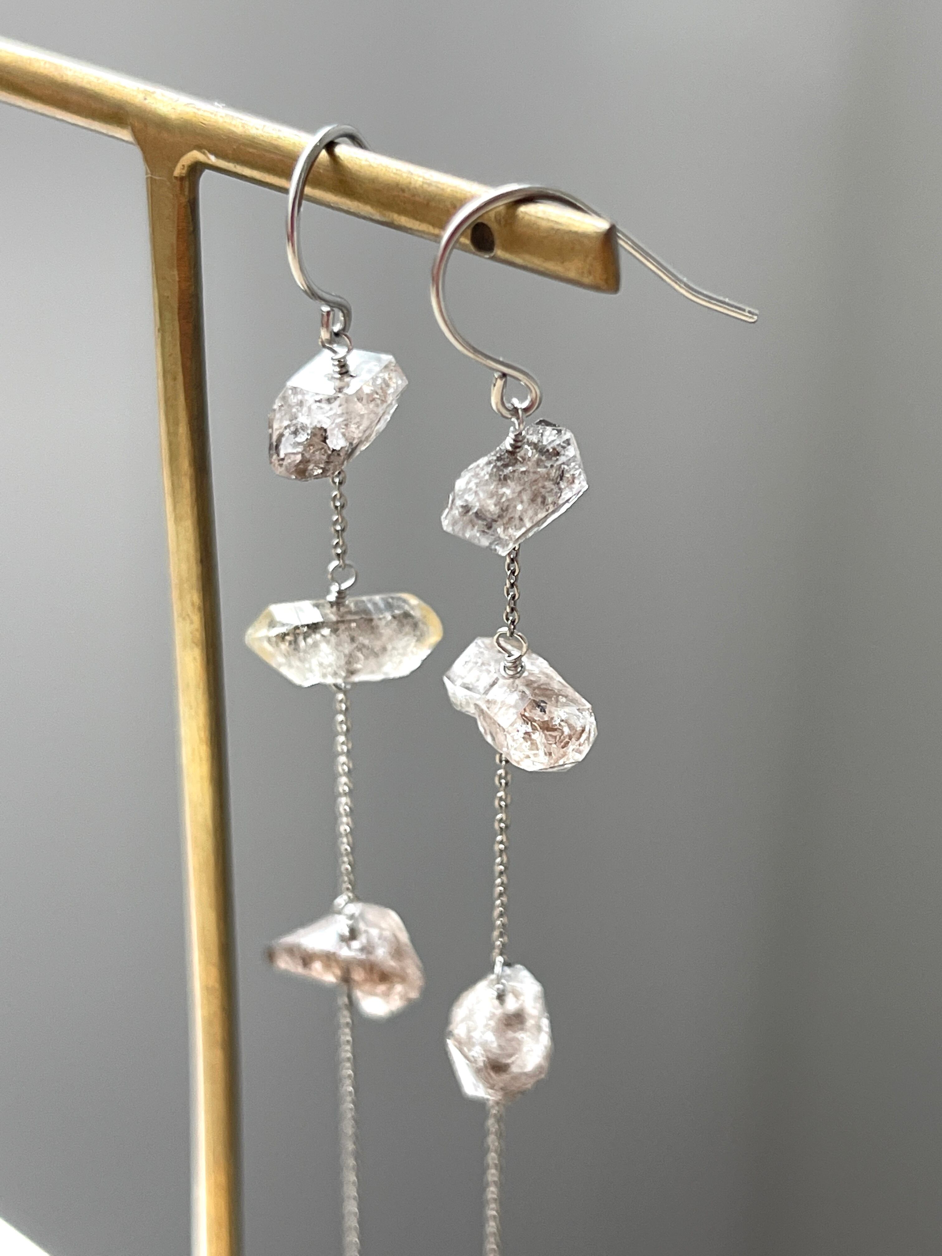パキスタン産ダブルポイントクリスタルのロングピアスです。