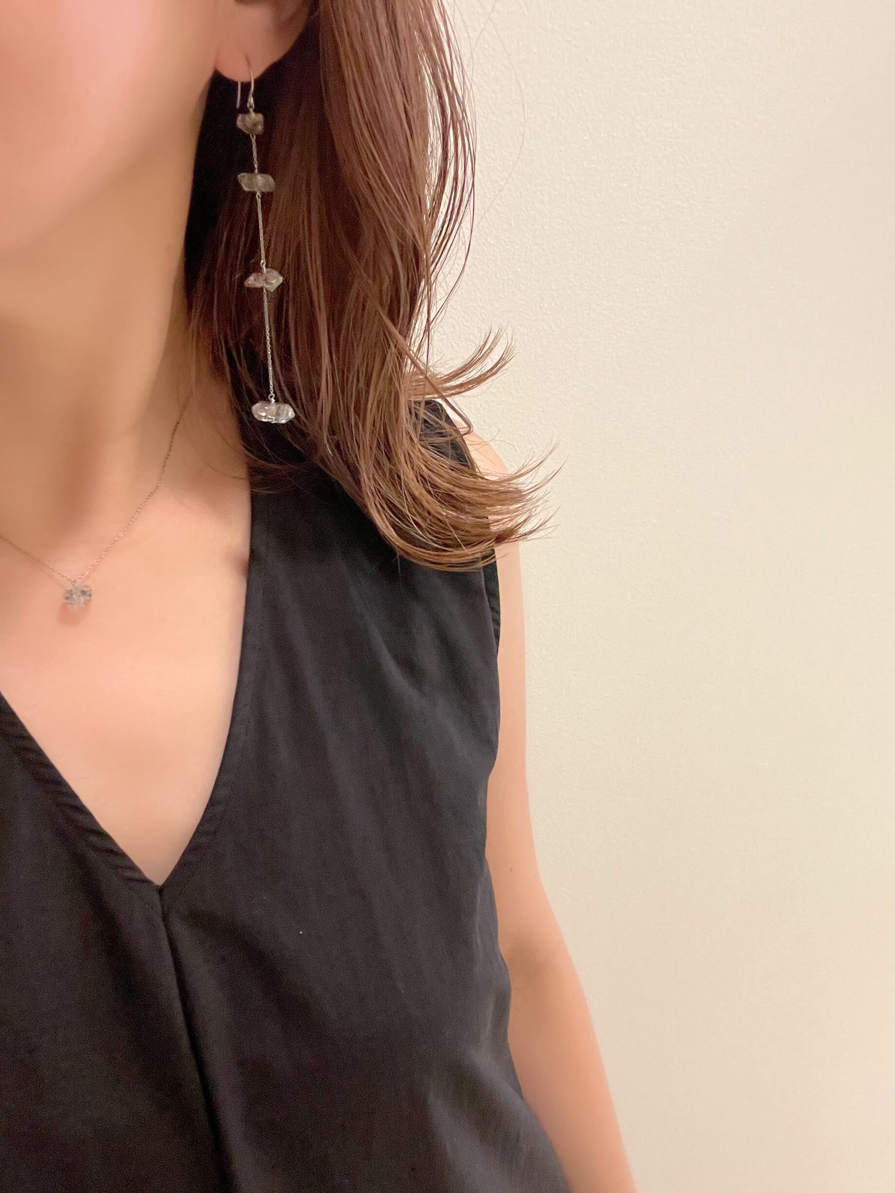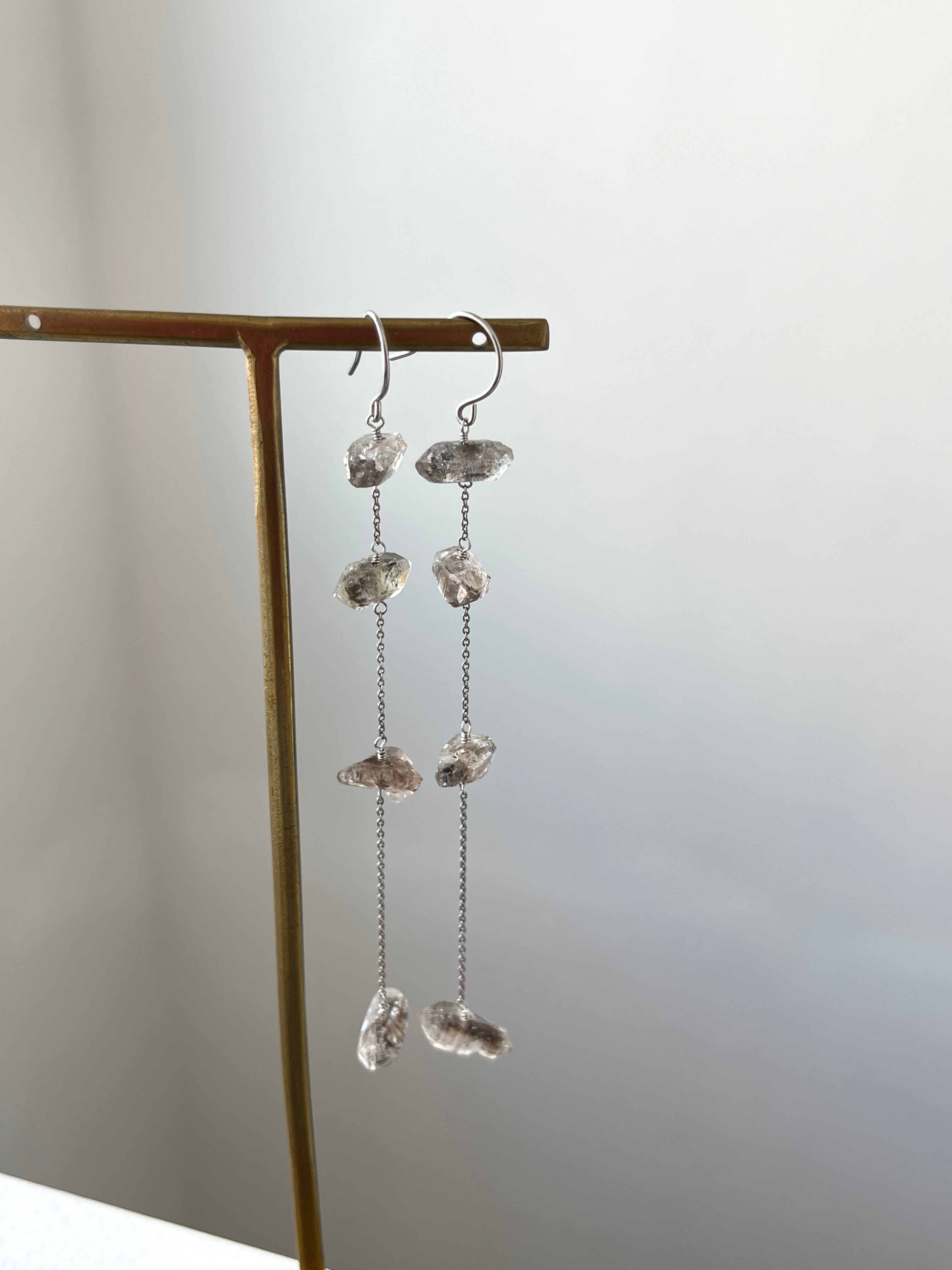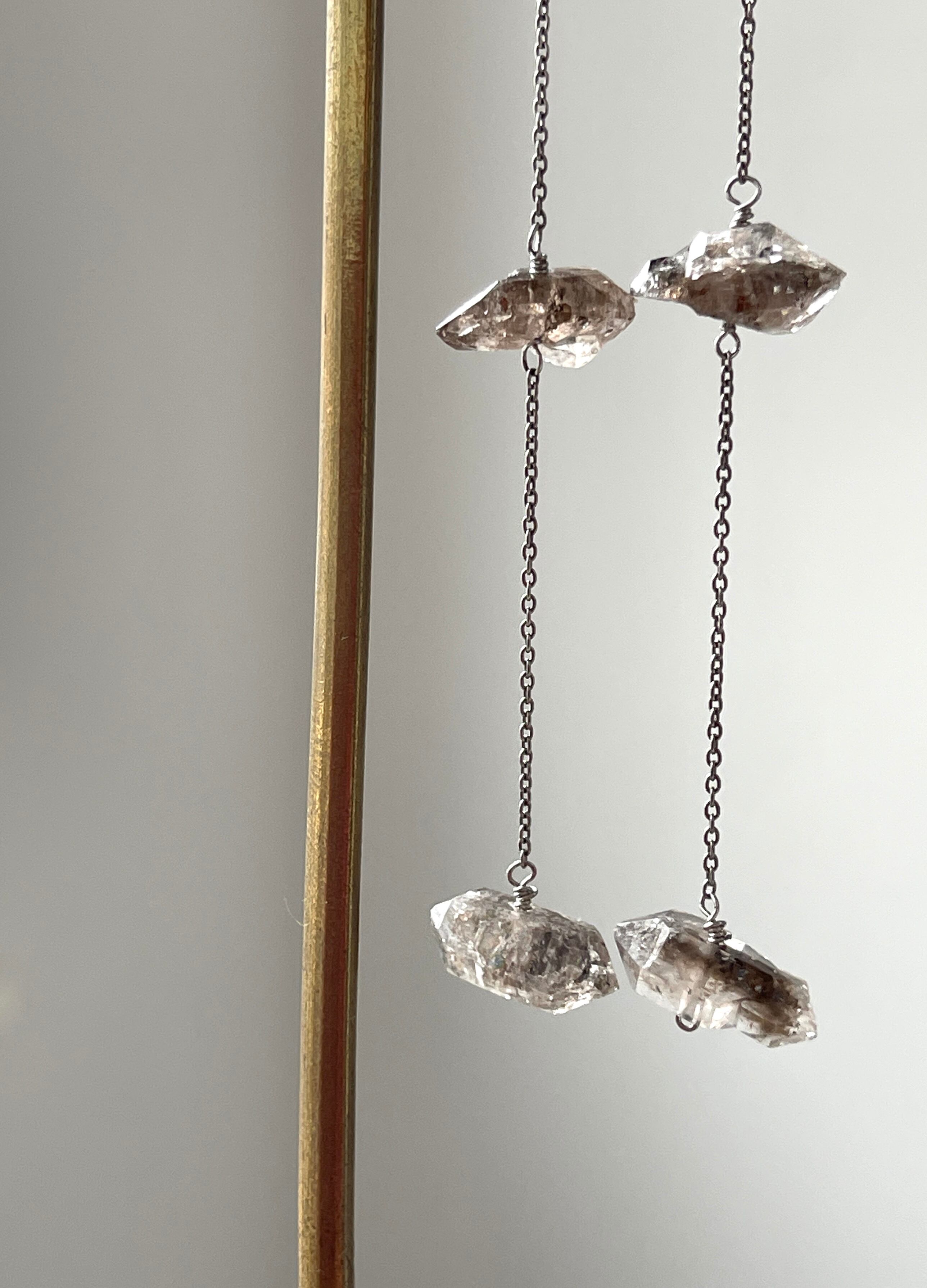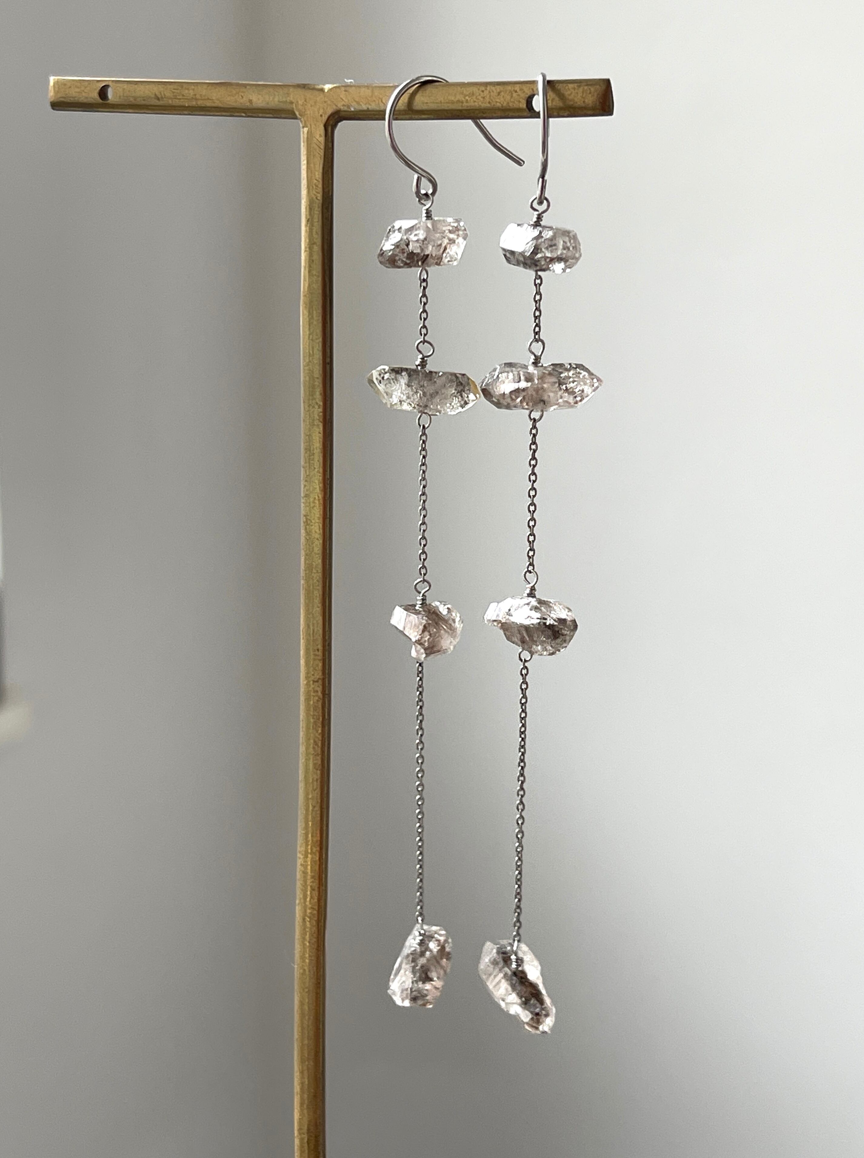 パキスタン産ダブルポイントクリスタルのロングピアスです。
