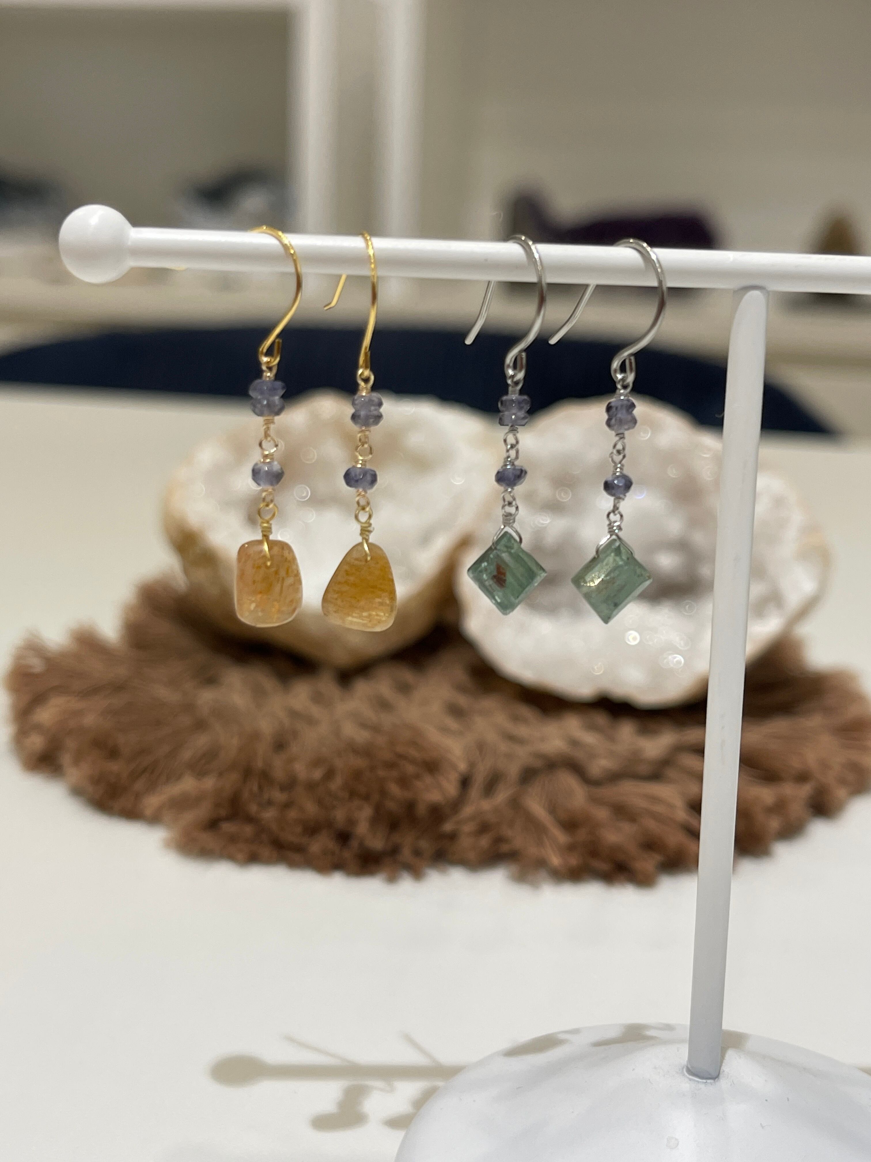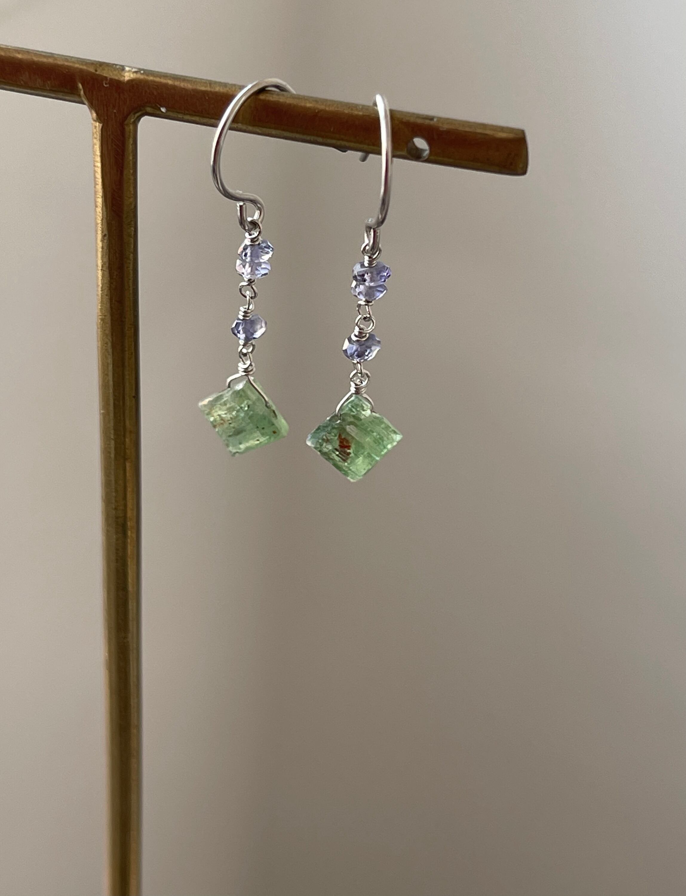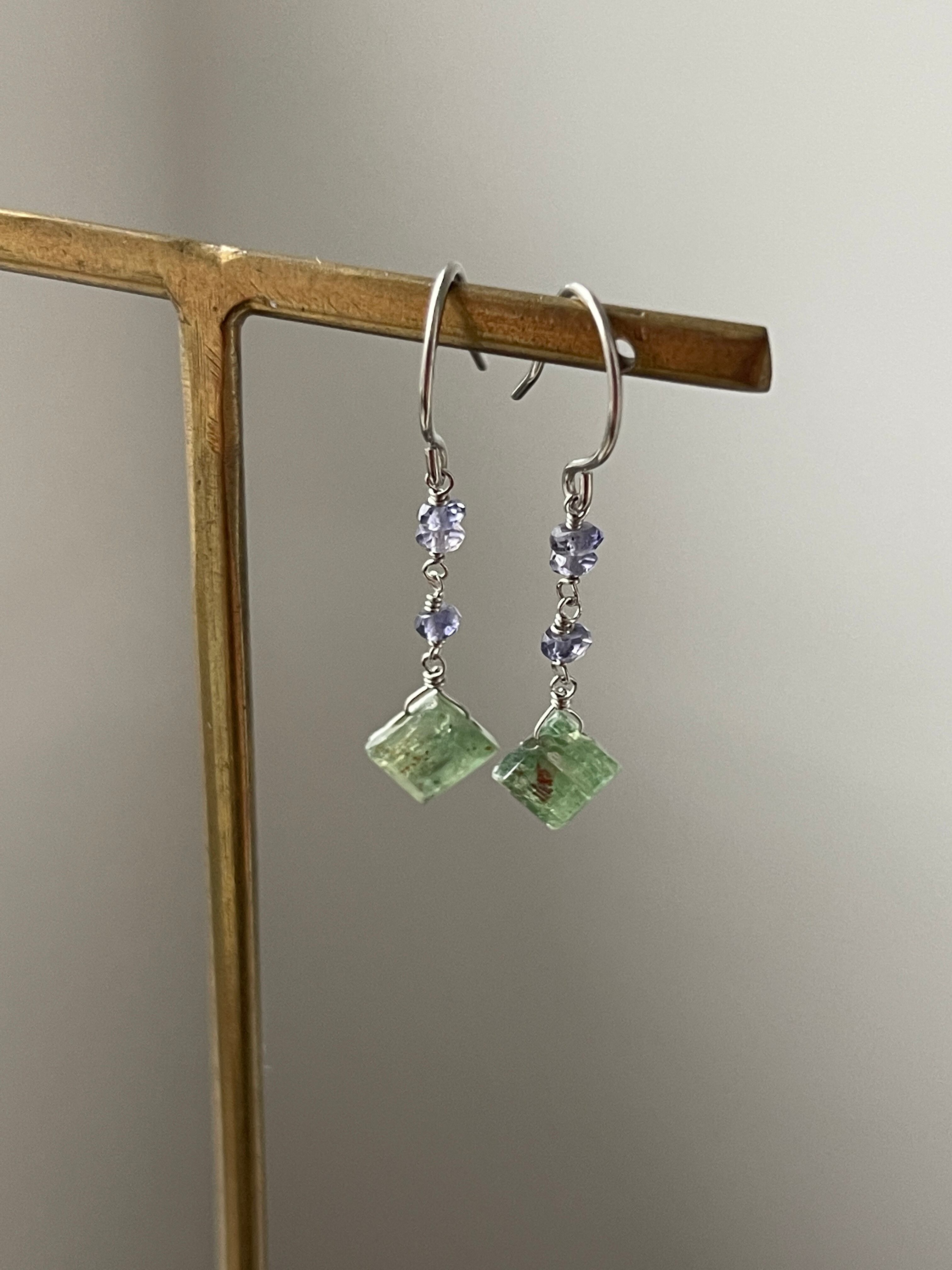 稀少石グリーンカイヤナイトとアイオライトのピアスです。