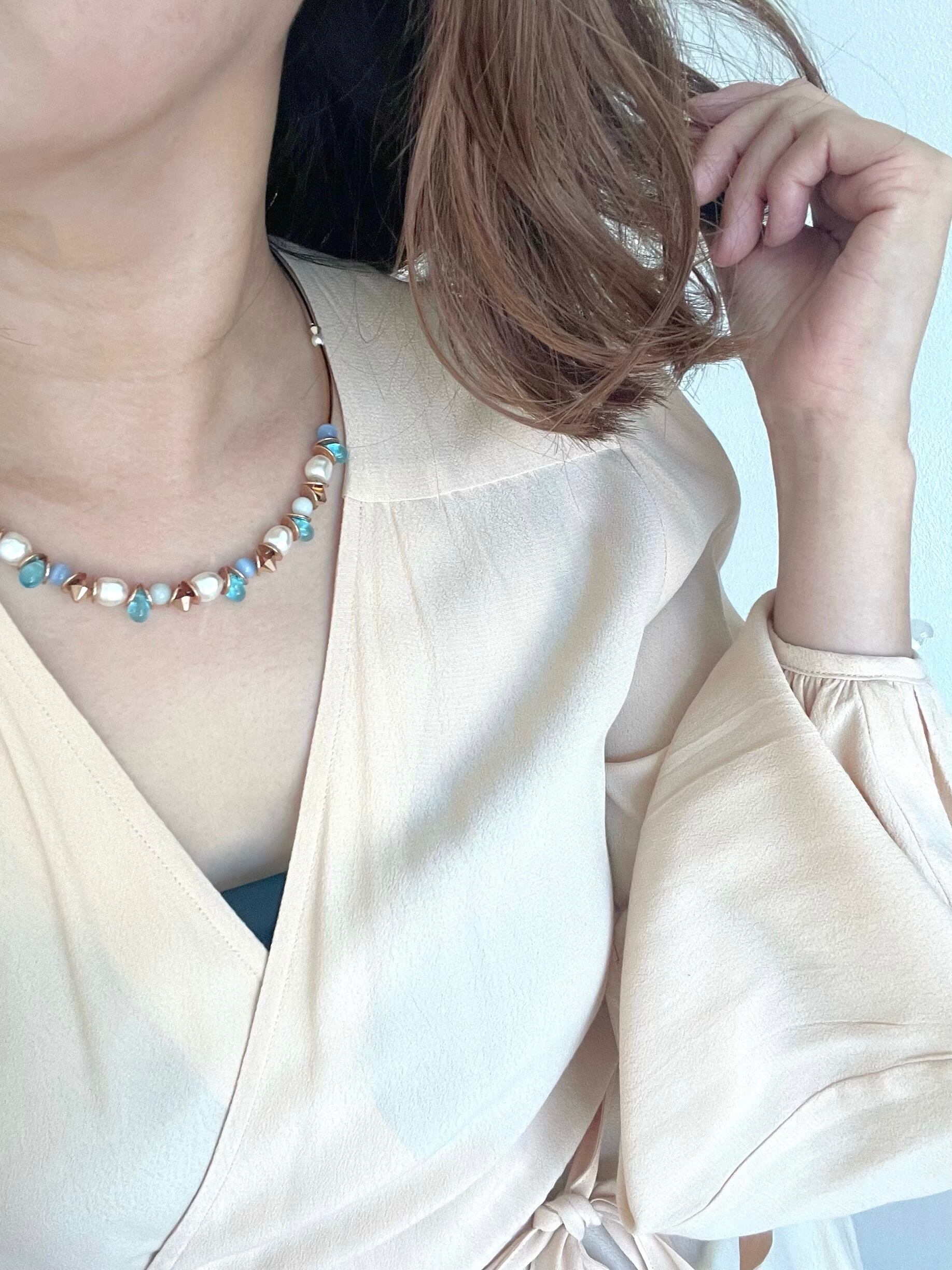 カジュアルスタイルにもパーティーシーンにも活躍しちゃう素敵なネックレスです。
