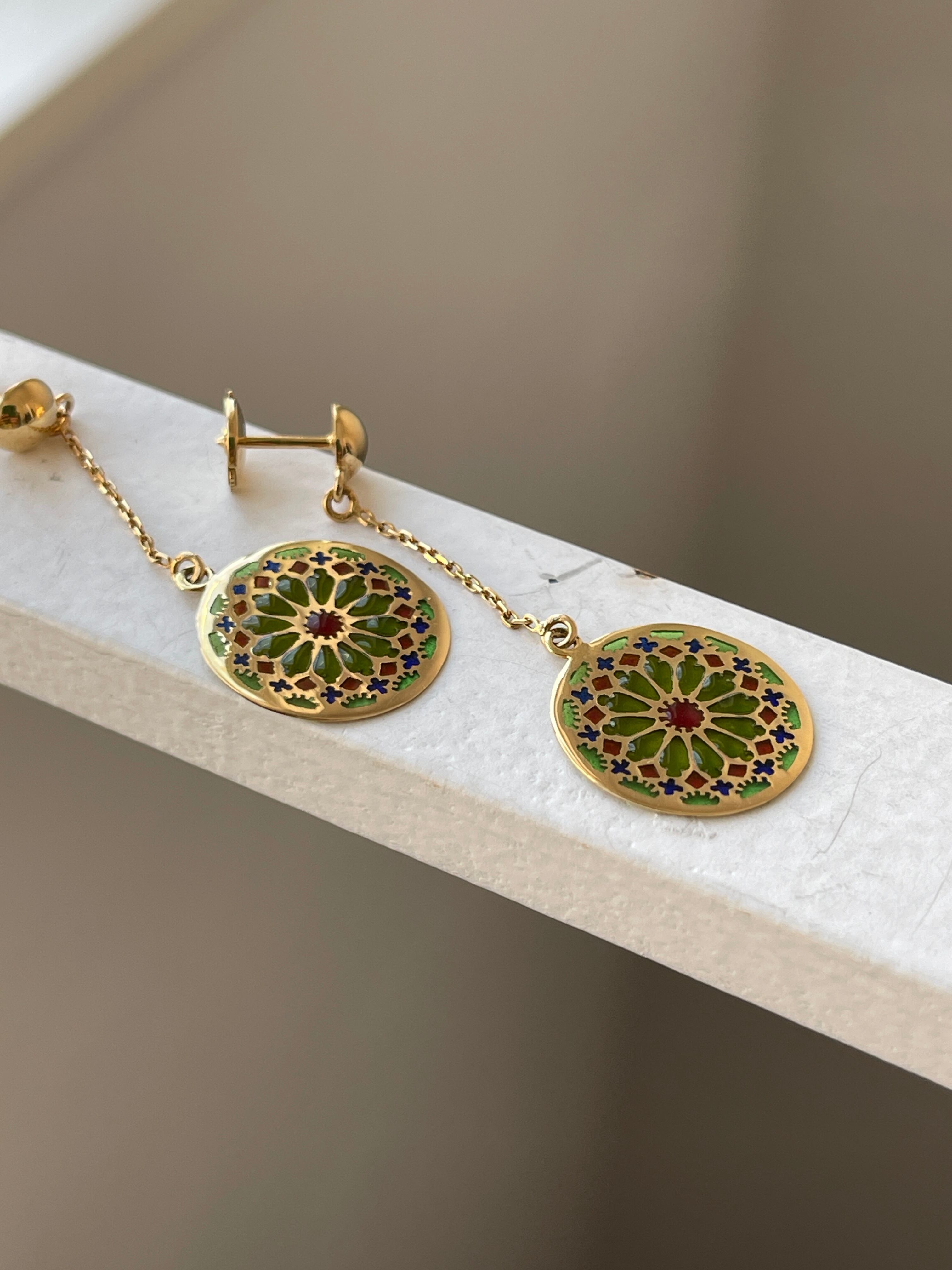 伝統的で希少価値のある技術を使って七宝をいれています。完全手作業の為、色やサイズはピースごとに若干異なります。